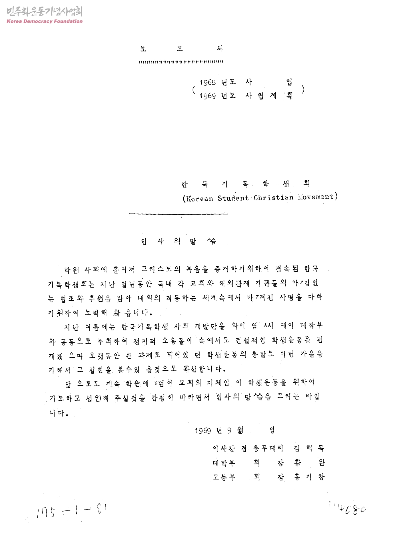 1968년도사업,1969년도사업계획-보고서