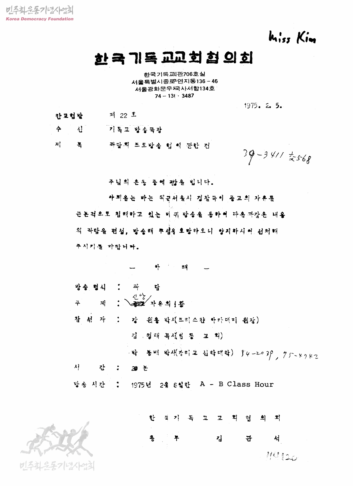좌담회 프로방송 협조에 관한 건[수신:기독교 방송국장]