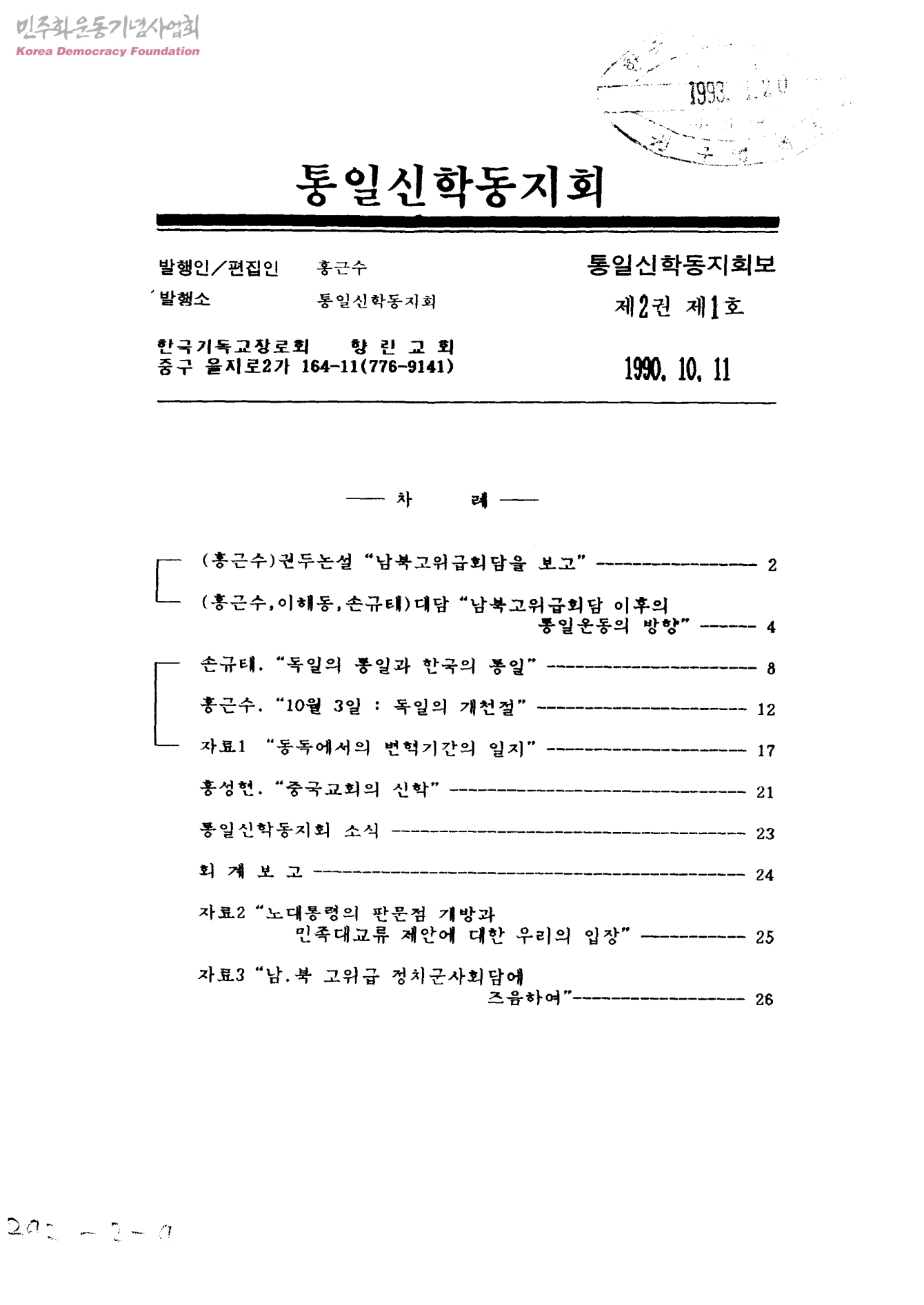 통일신학동지회 제2권 제1호