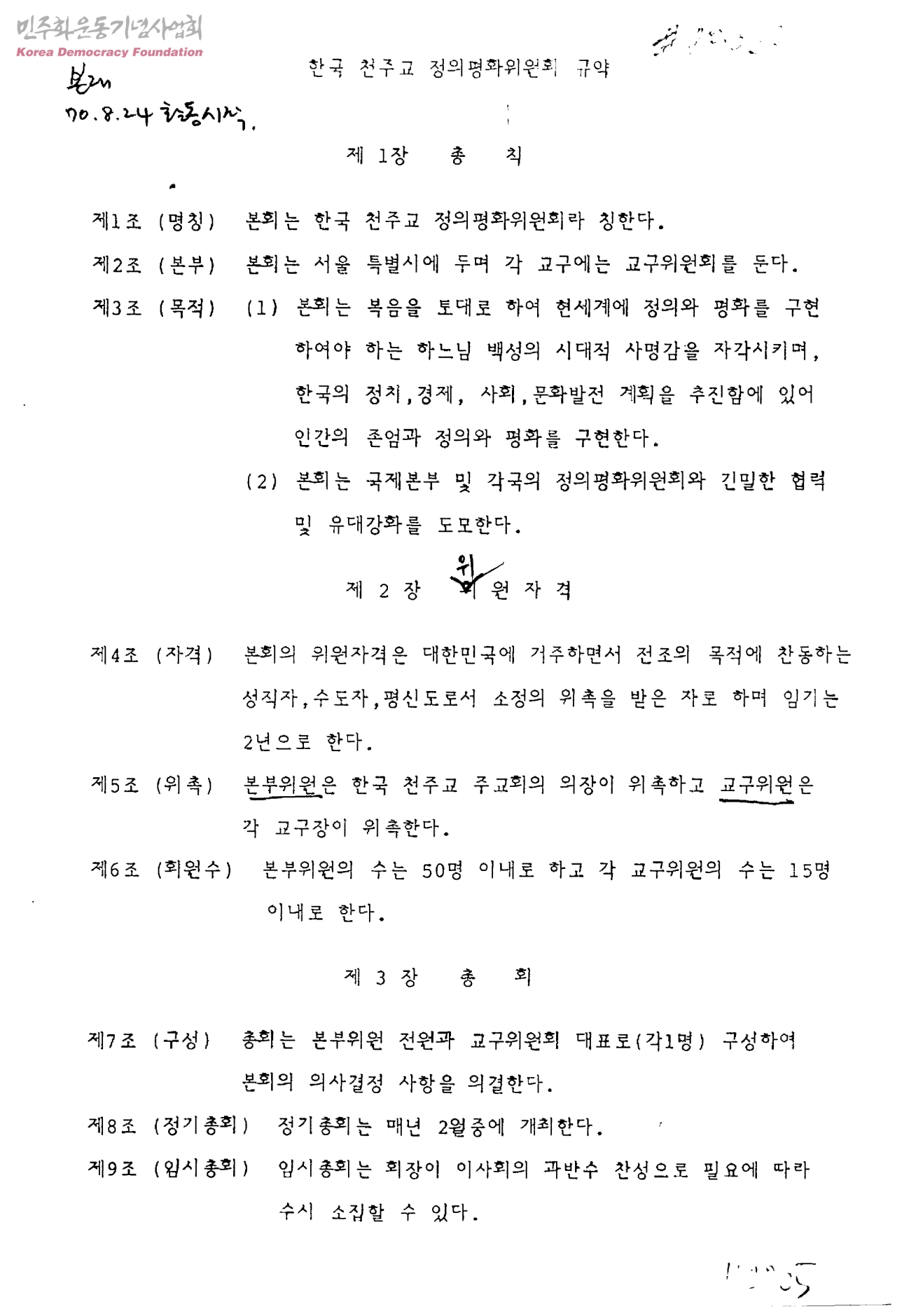 한국 천주교 정의평화위원회 규약