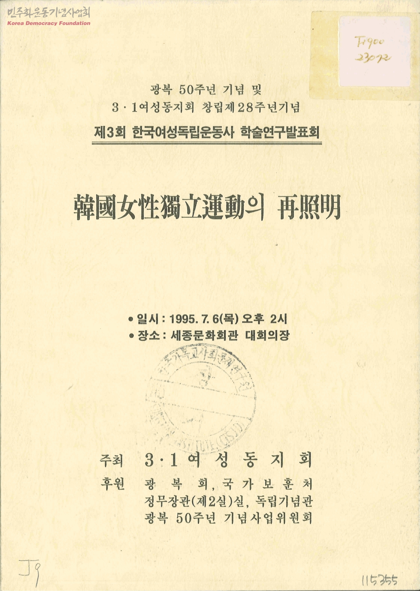 제3회 한국여성독립운동사 학술연구발표회_韓國女性獨立運動의 再照明-