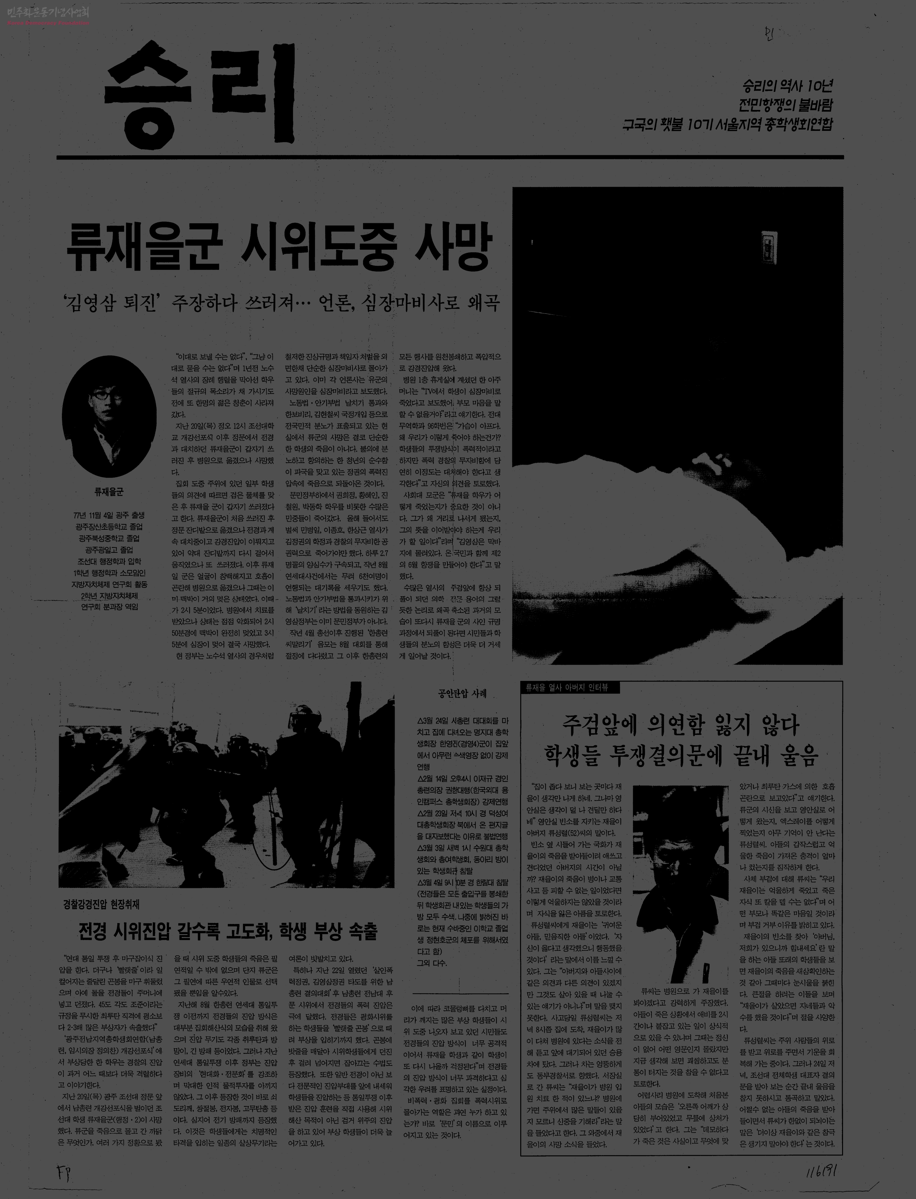 - 류재을군 시위도중 사망...언론, 심장마비사로 왜곡