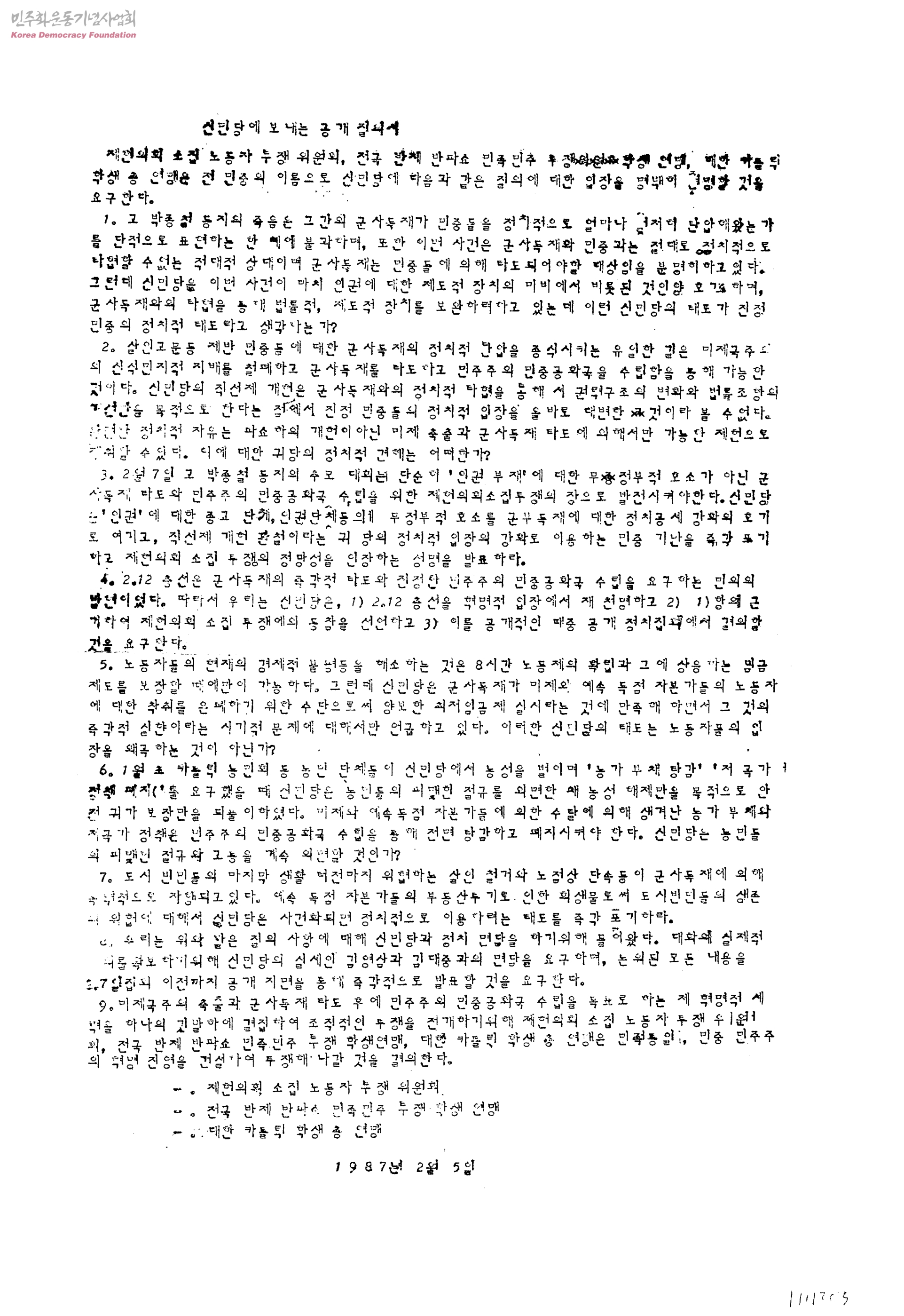 신민당에 보내는 공개 질의서