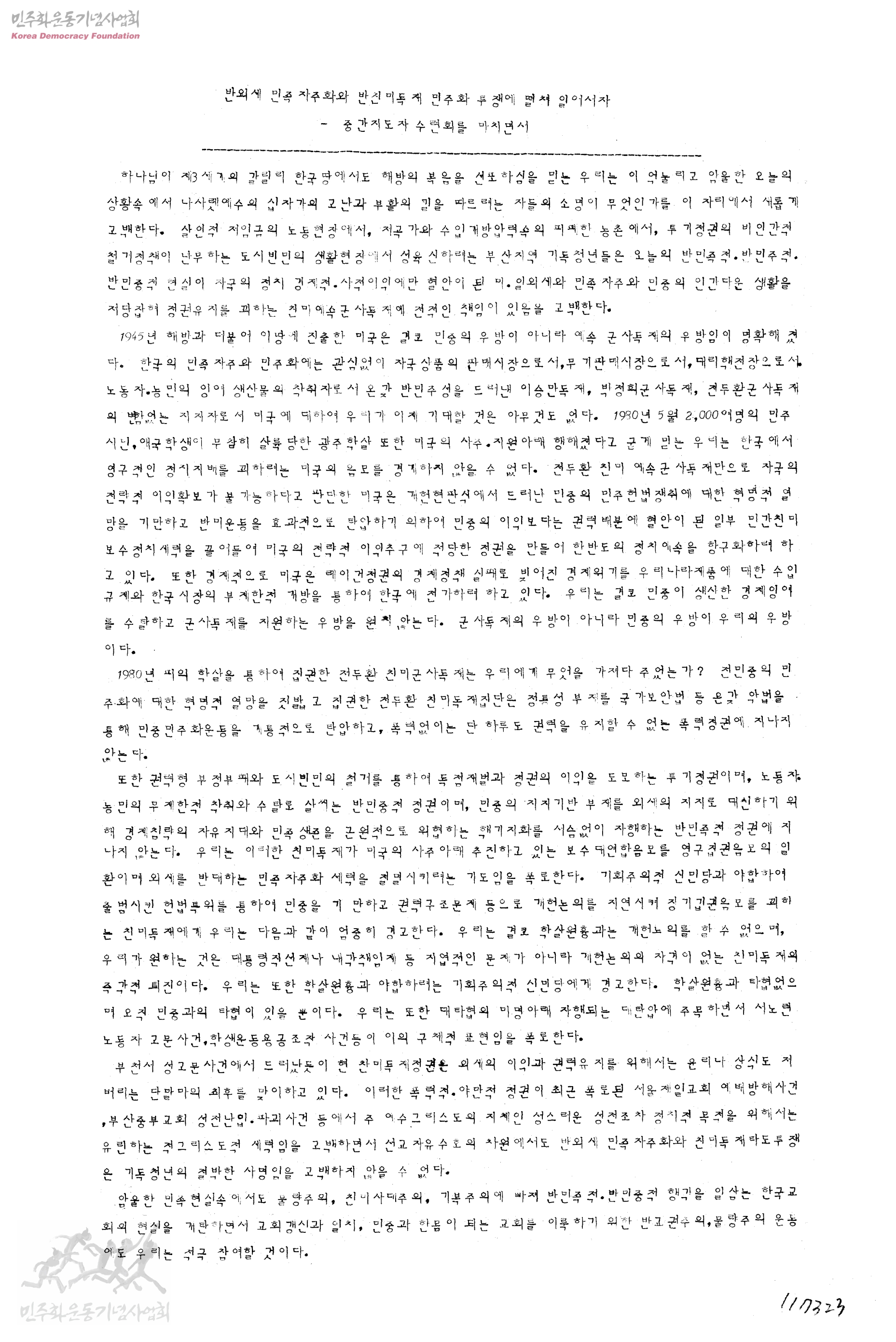 반외세 민족자주화와 반진미독재 민주화 투쟁에 떨쳐 일어서자-중간지도자수련회를 마치면서