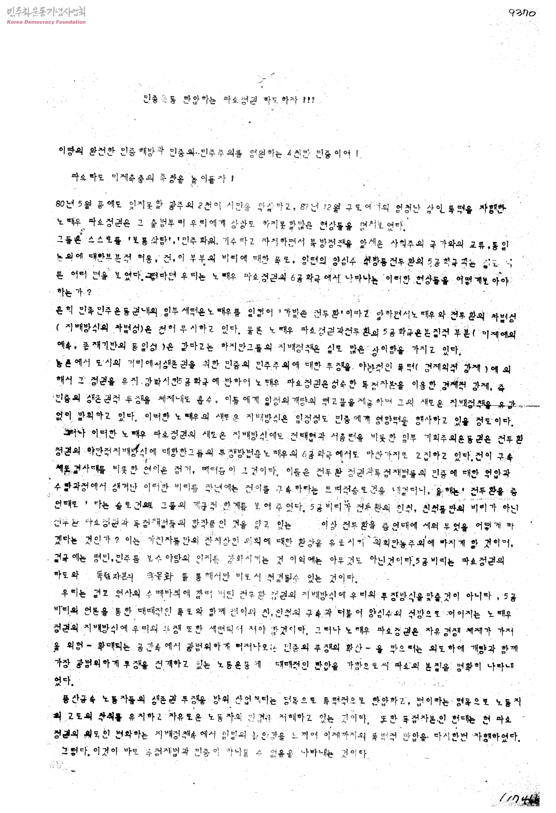 민중운동 탄압하는 파쇼정권 타도하자!!