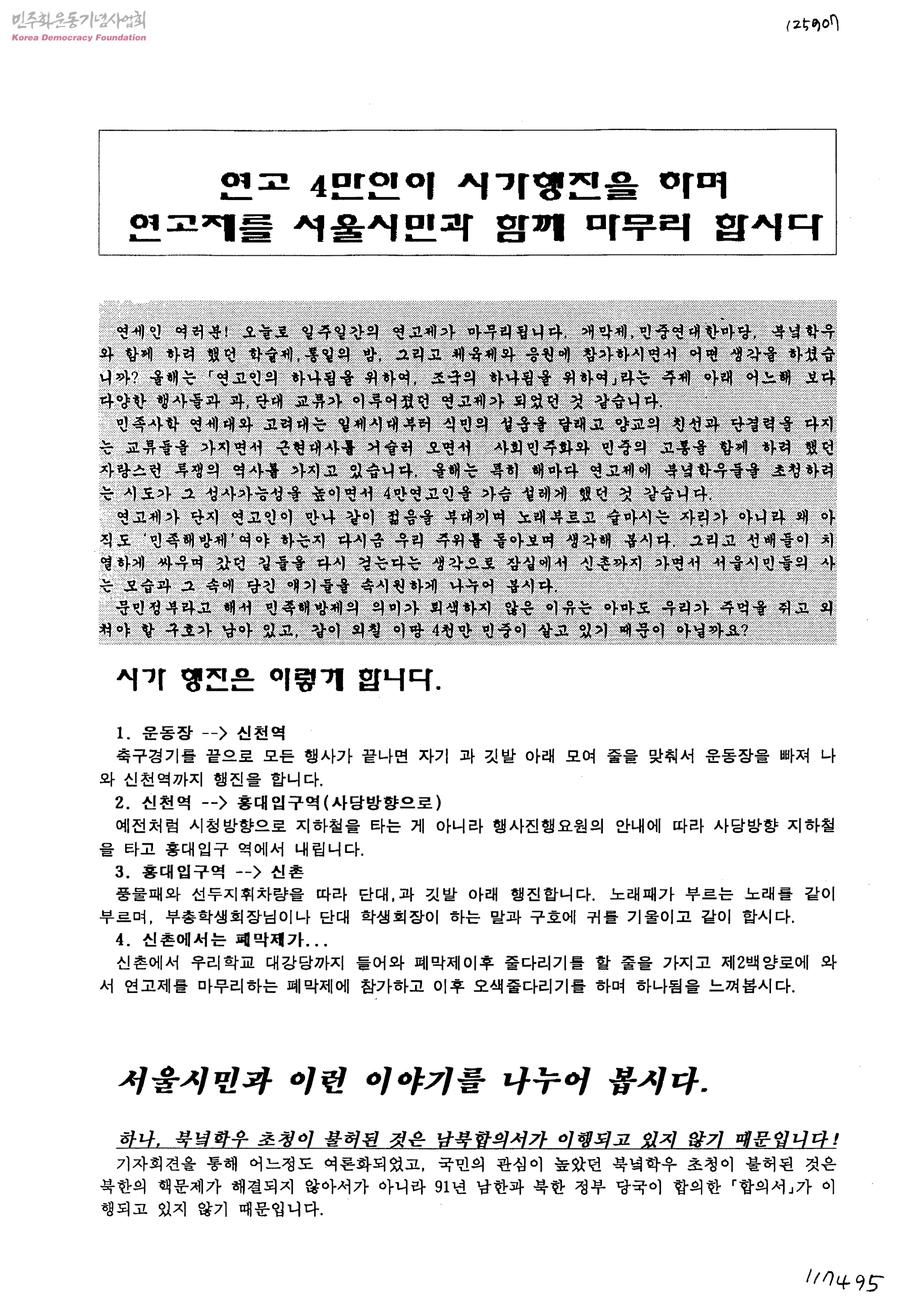 연고 4만인이 시가행진을 하며 연고제를 서울시민과 함께 마무리 합시다