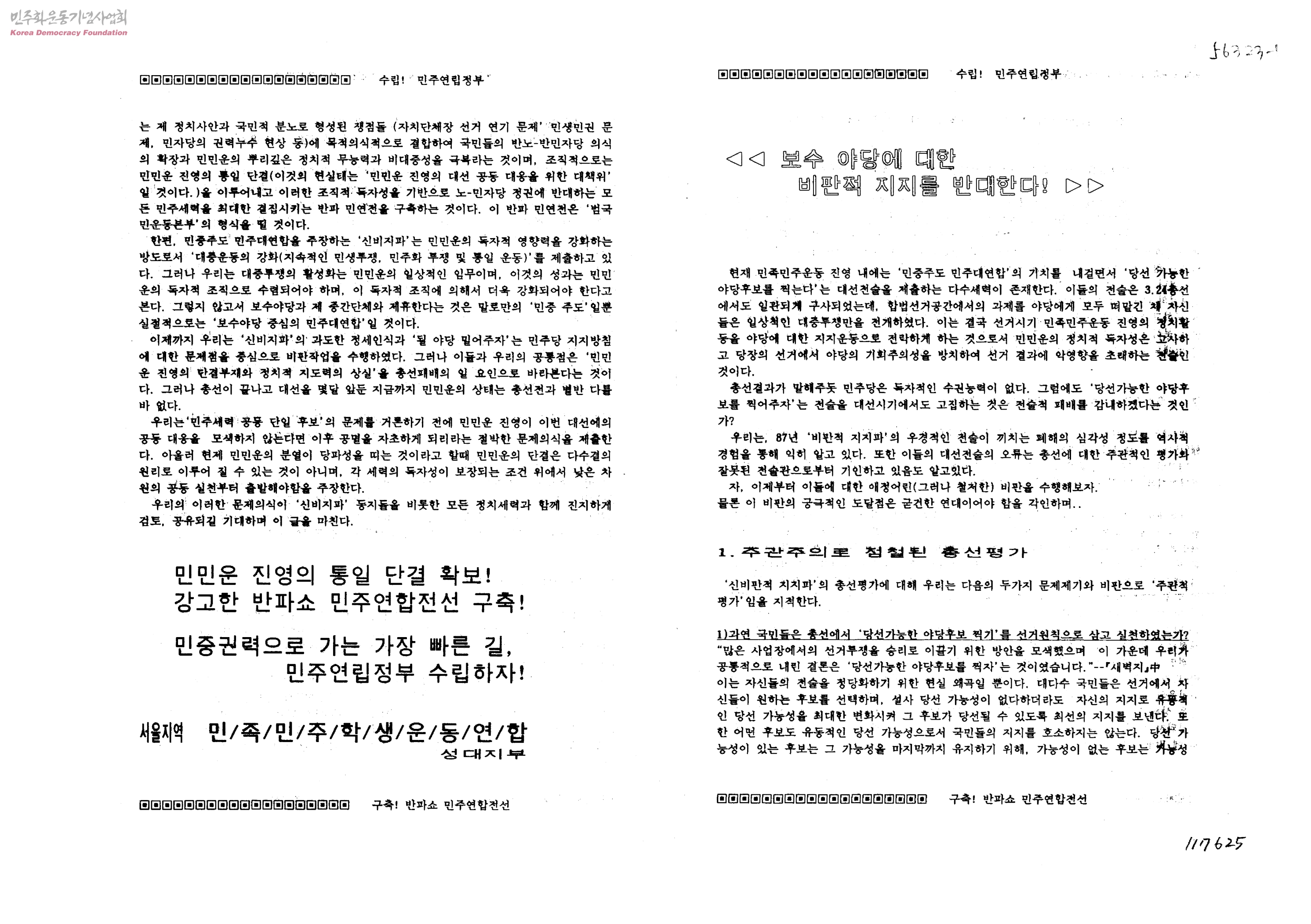 보수 야당에 대한 비판적 지지를 반대한다