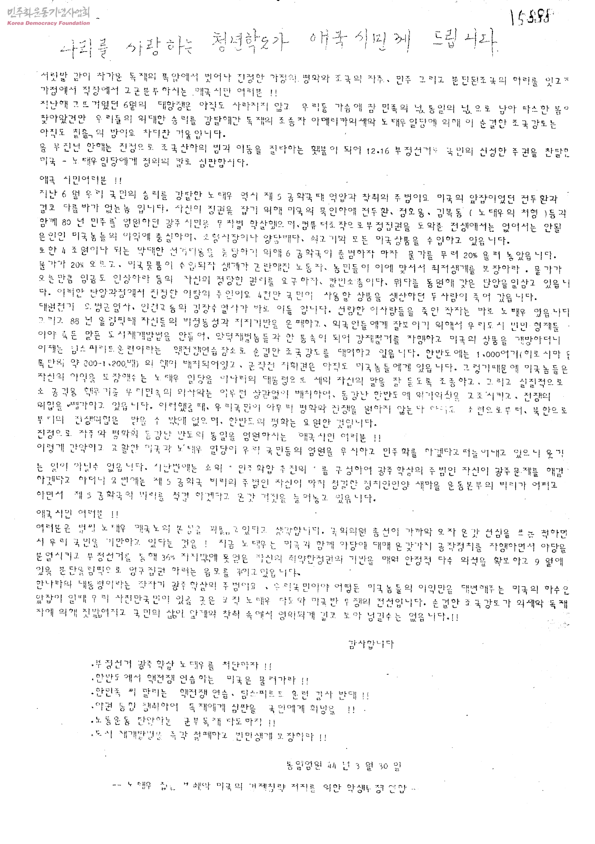 나라를 사랑하는 청년학도가 애국시민께 드립니다