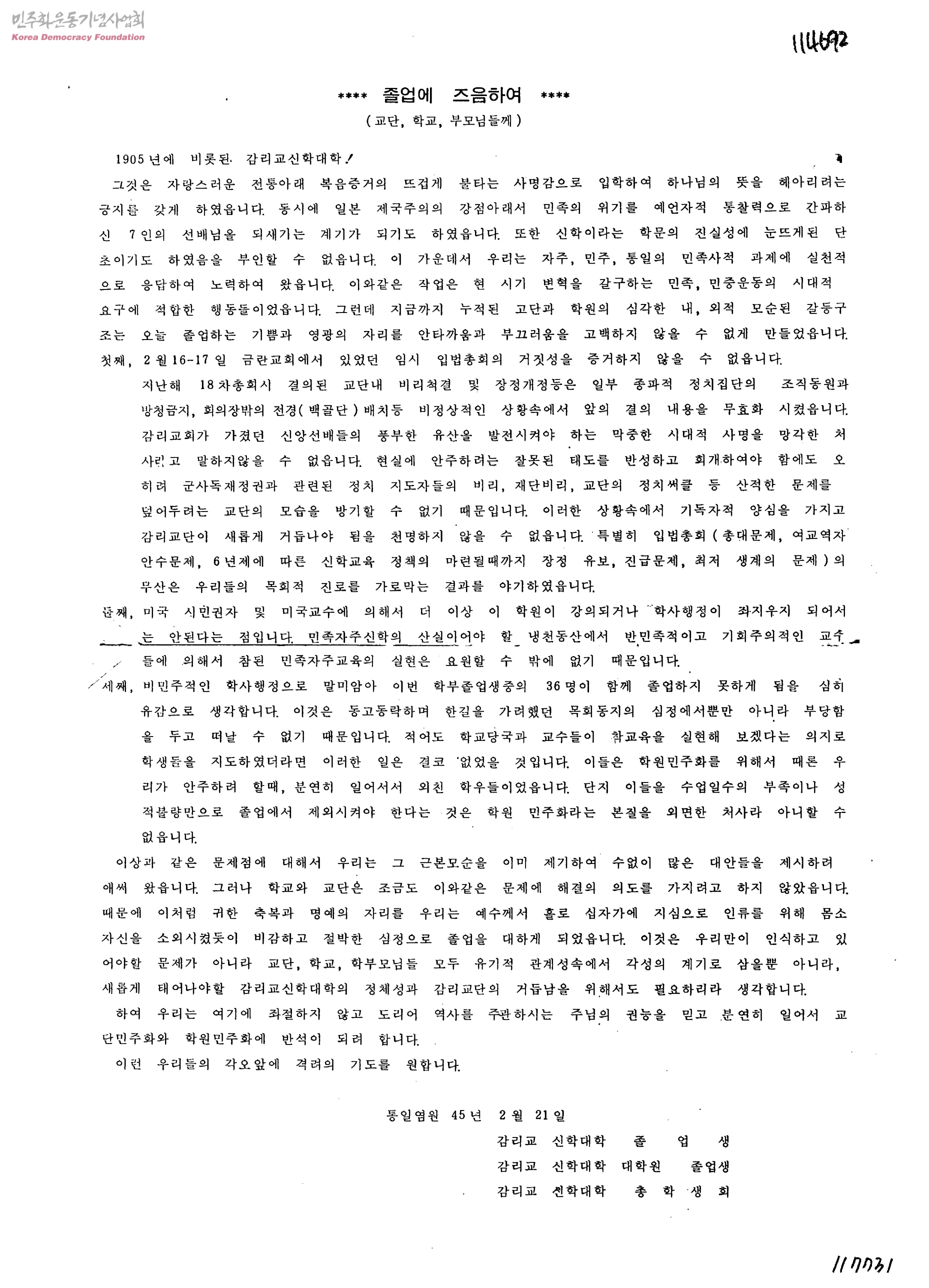 - 감리교신학대학졸업생, 감리교신학대학대학원졸업생, 감리교신학대학총학생회