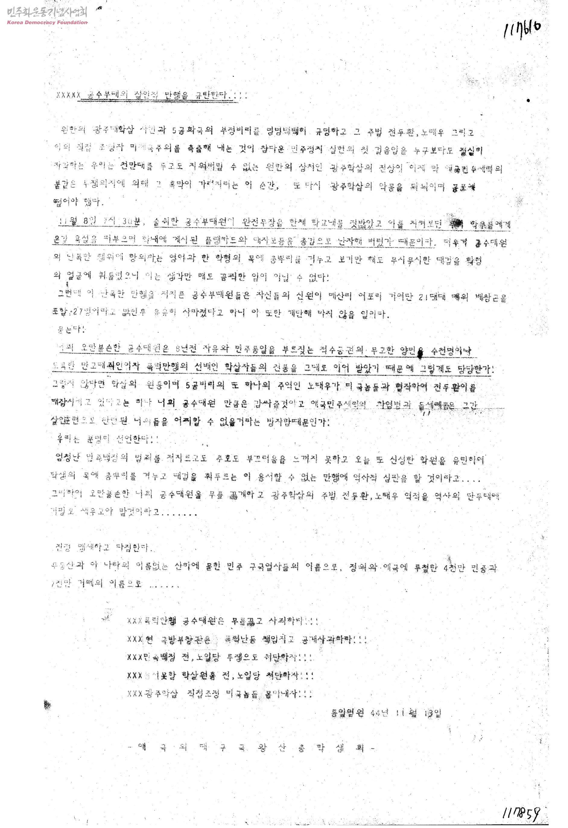 공수부대의 살인적 만행을 규탄한다