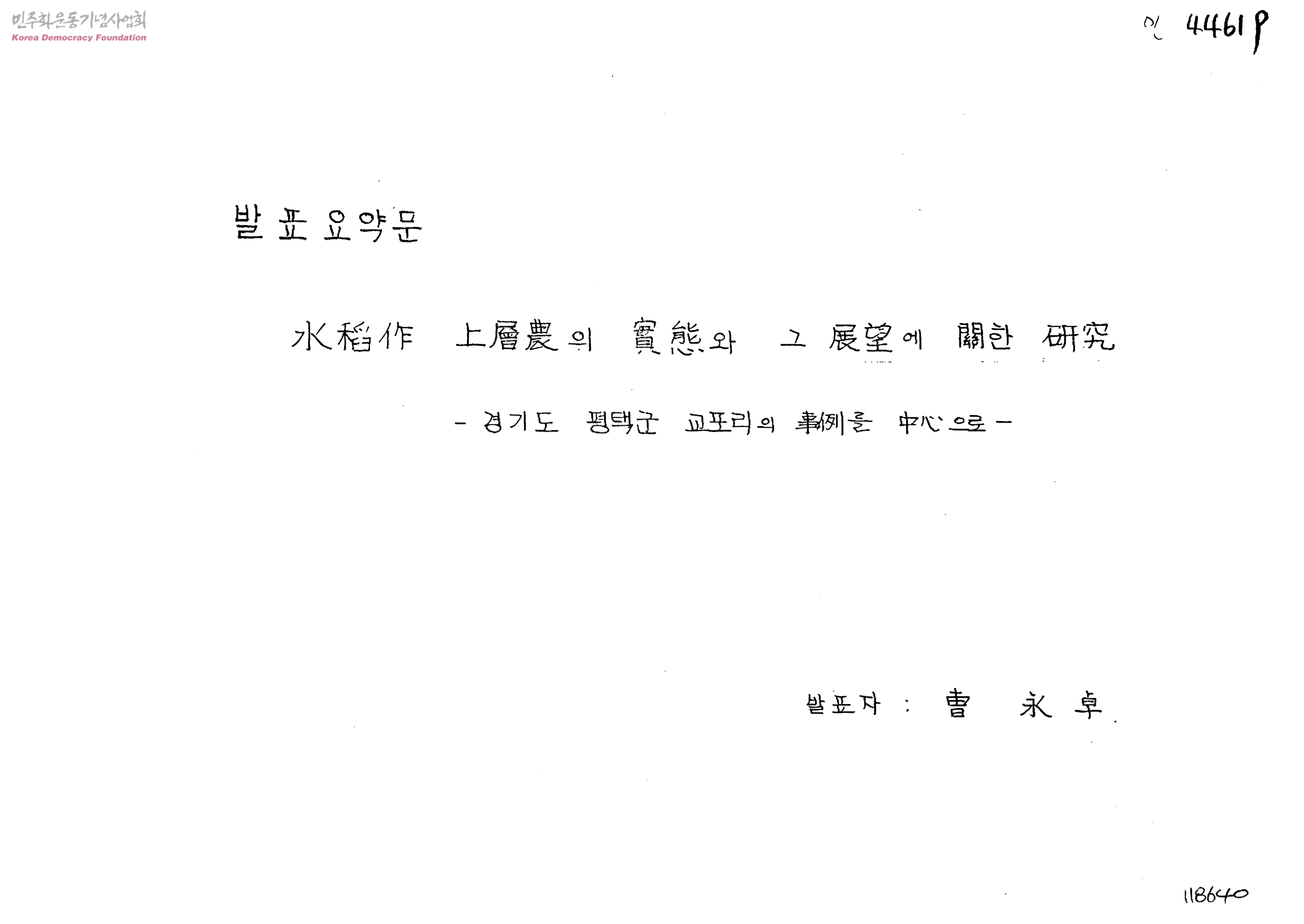 水稻作 上層農의 實態와 그 展望에 關한 硏究-경기도 평택군 교포리의 事例를 中心으로