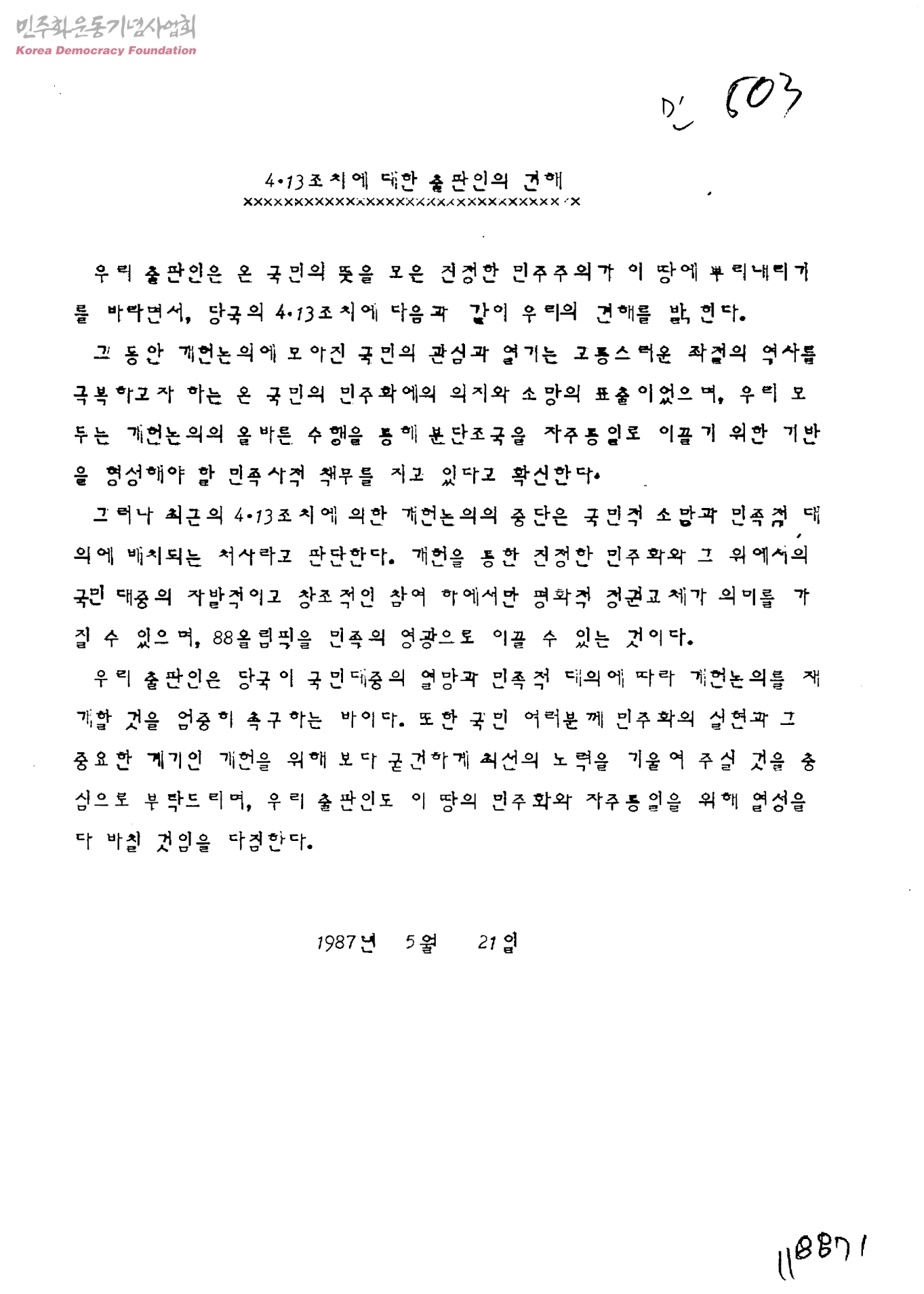4ㆍ13조치에 대한 출판인의 견해