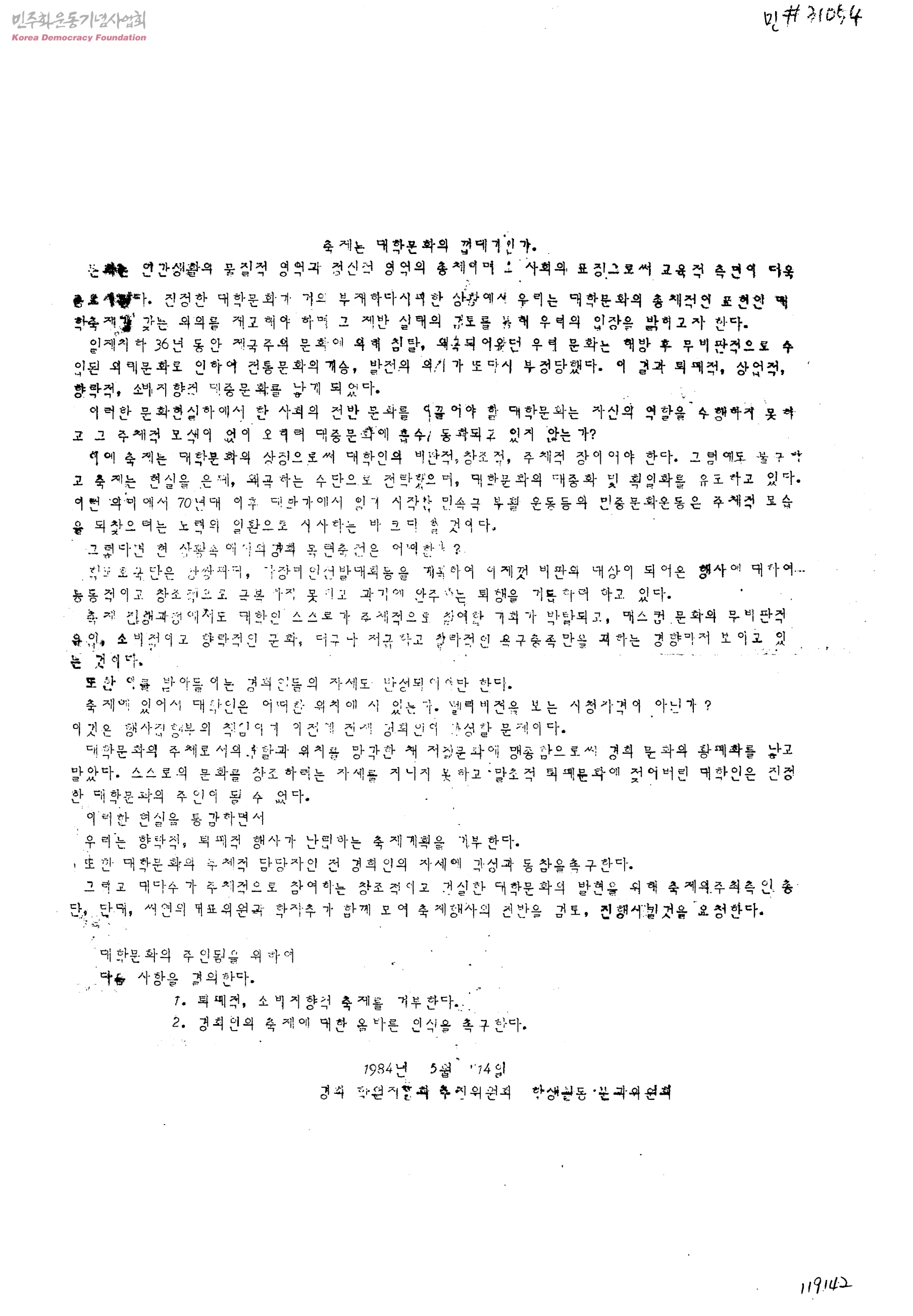 축제는 대학문화의 껍대기인가