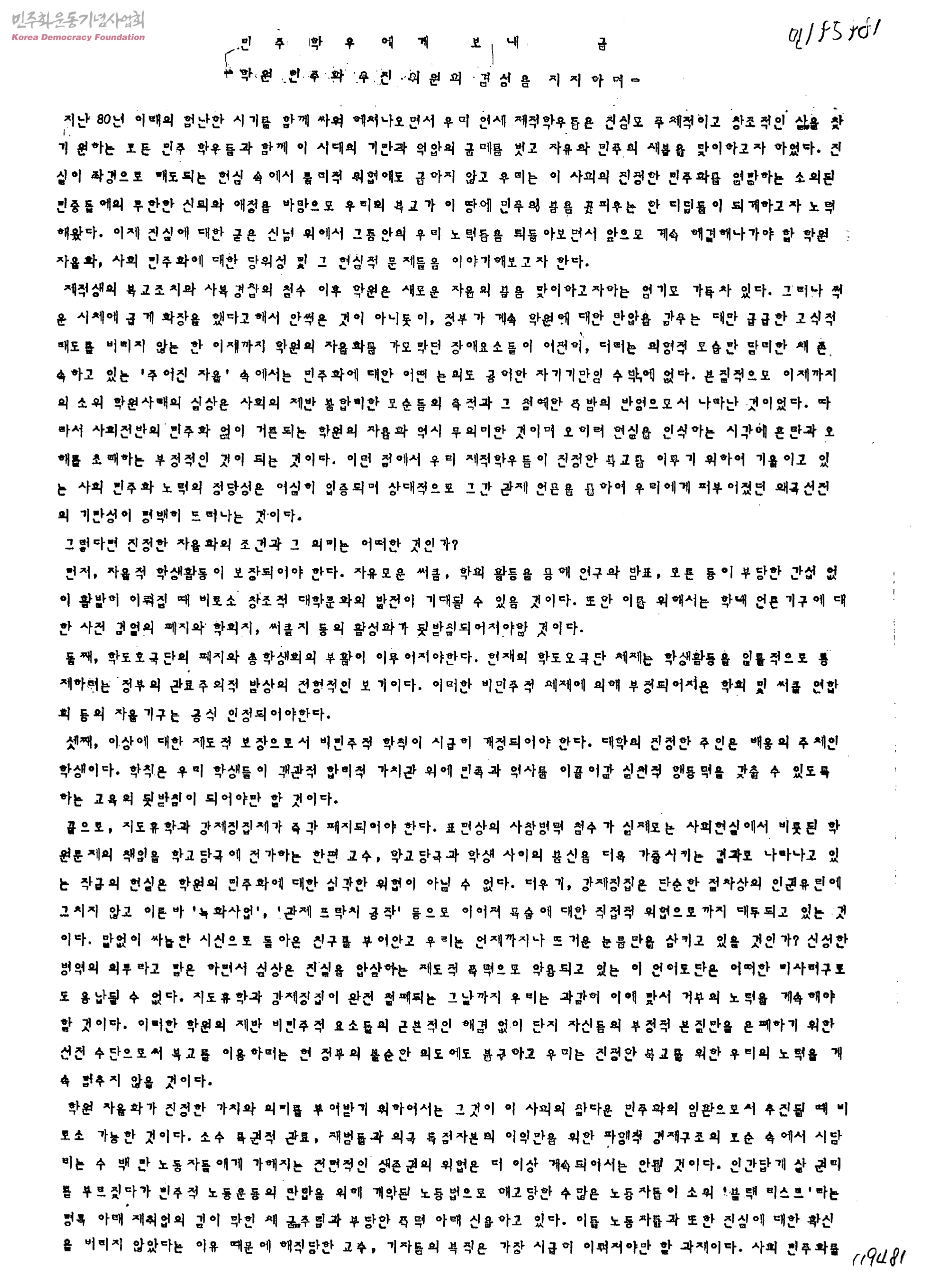 민주학우에게 보내는 글-학원 민주화 추진 위원회 결성을 지지하며