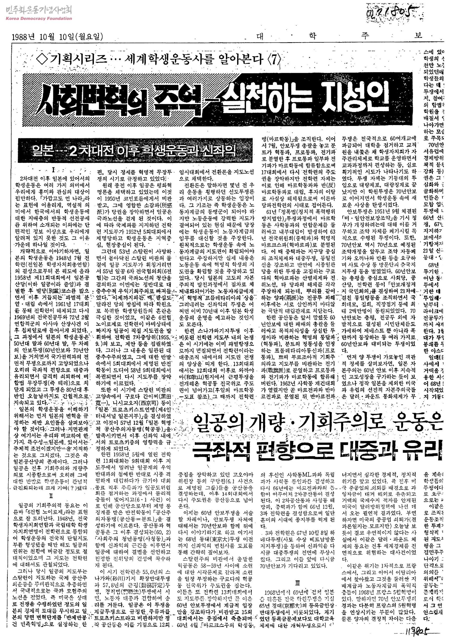 대학주보 세계학생운동사를 알아본다<7>-사회변혁의 주역-실천하는 지성인