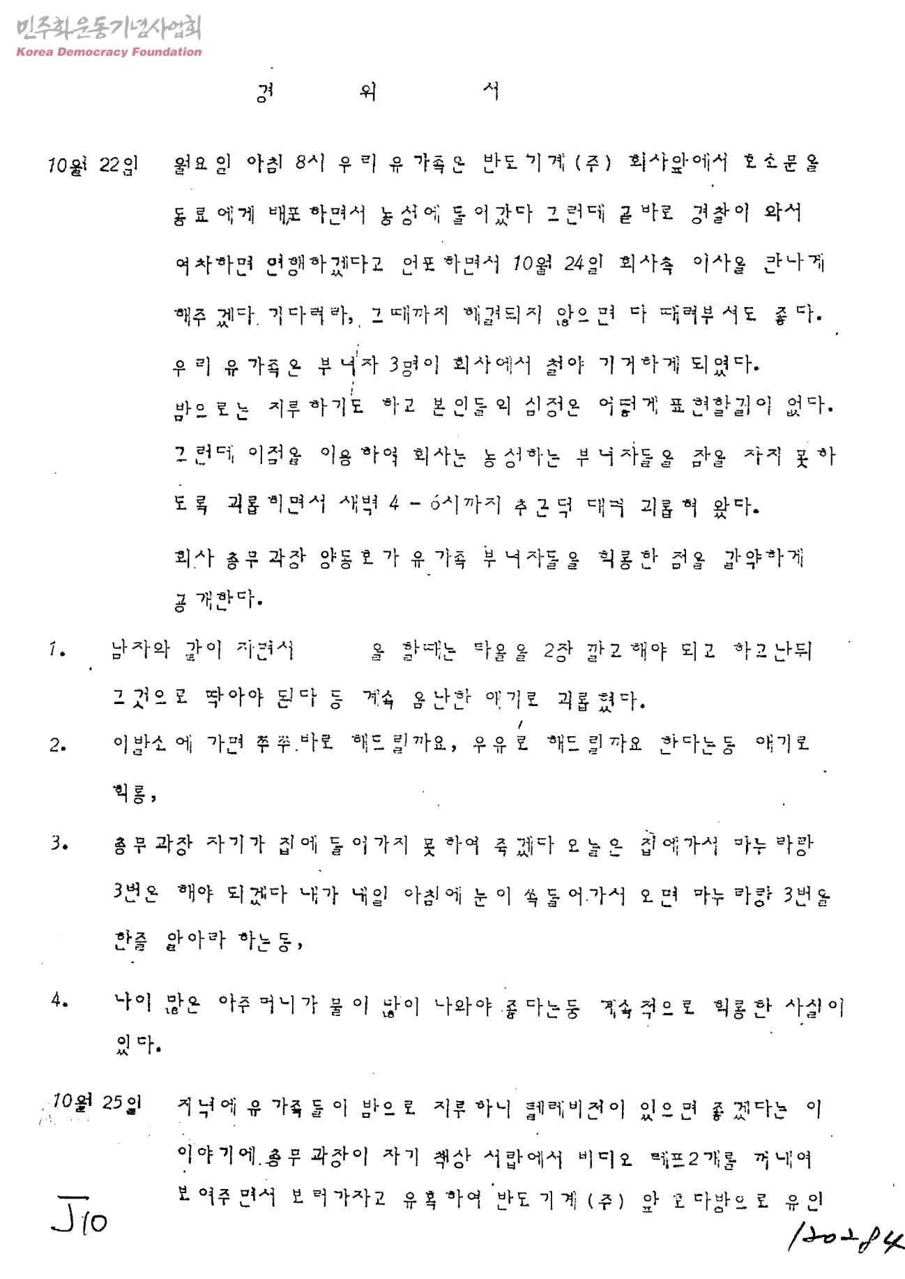 경위서[반도기계㈜유가족이 농성중에 일어난 사건을 쓴 경위서]