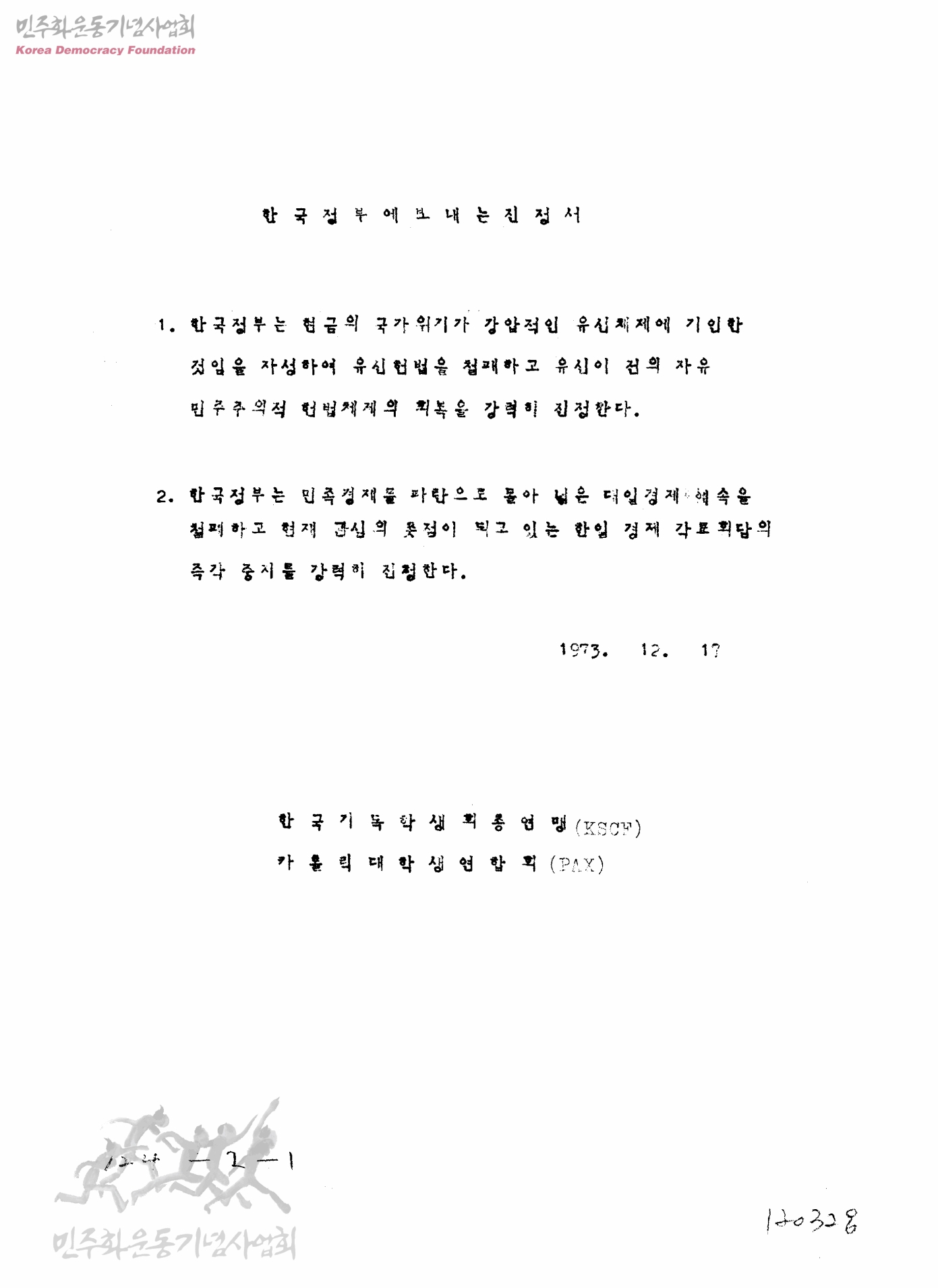 - 한국기독학생회총연맹(KSCF),카톨릭대학생연합회(PAX)
