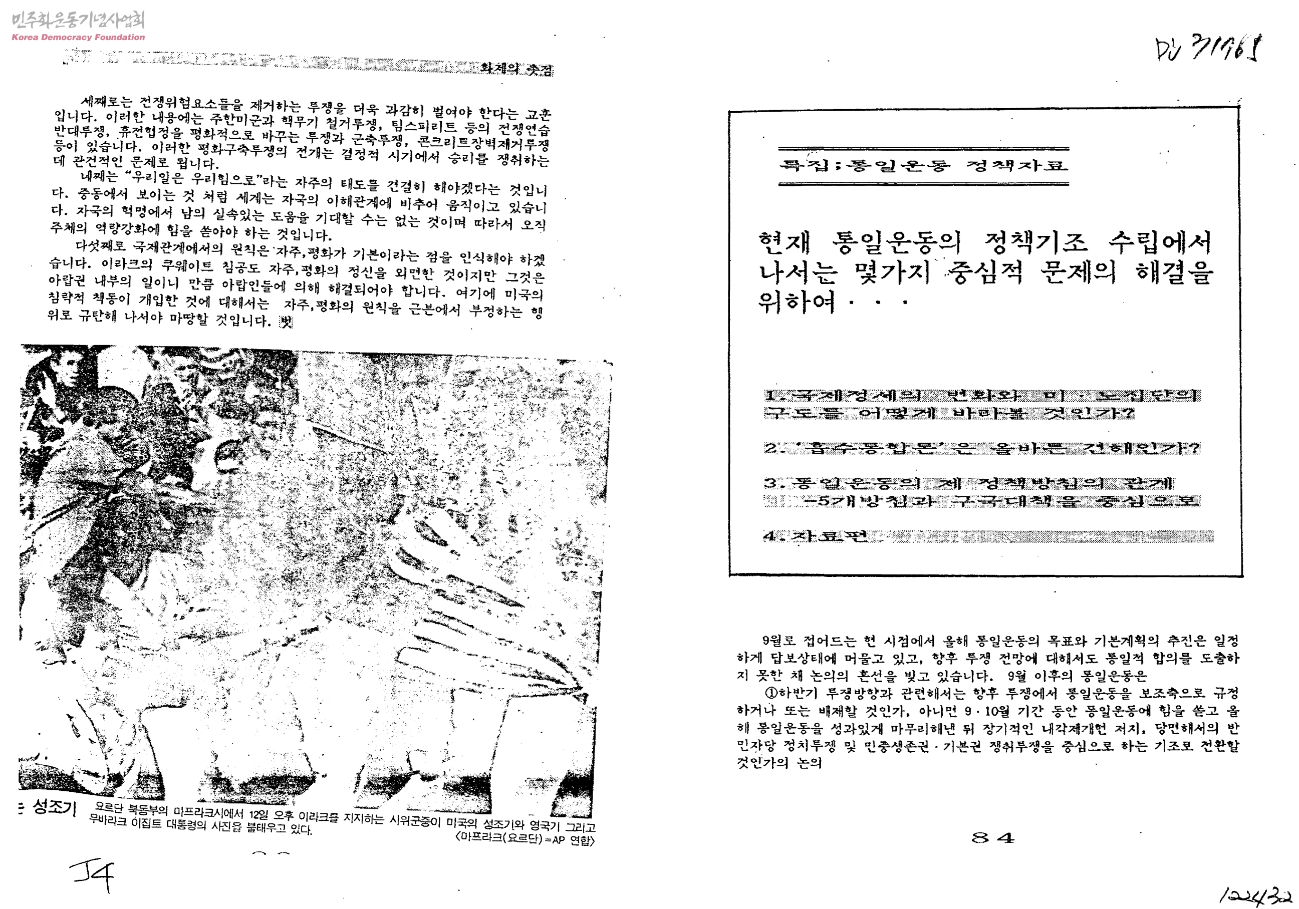 현재 통일운동의 정책기조 수립에서 나서는 몇가지 중심적 문제의 해결을 위하여