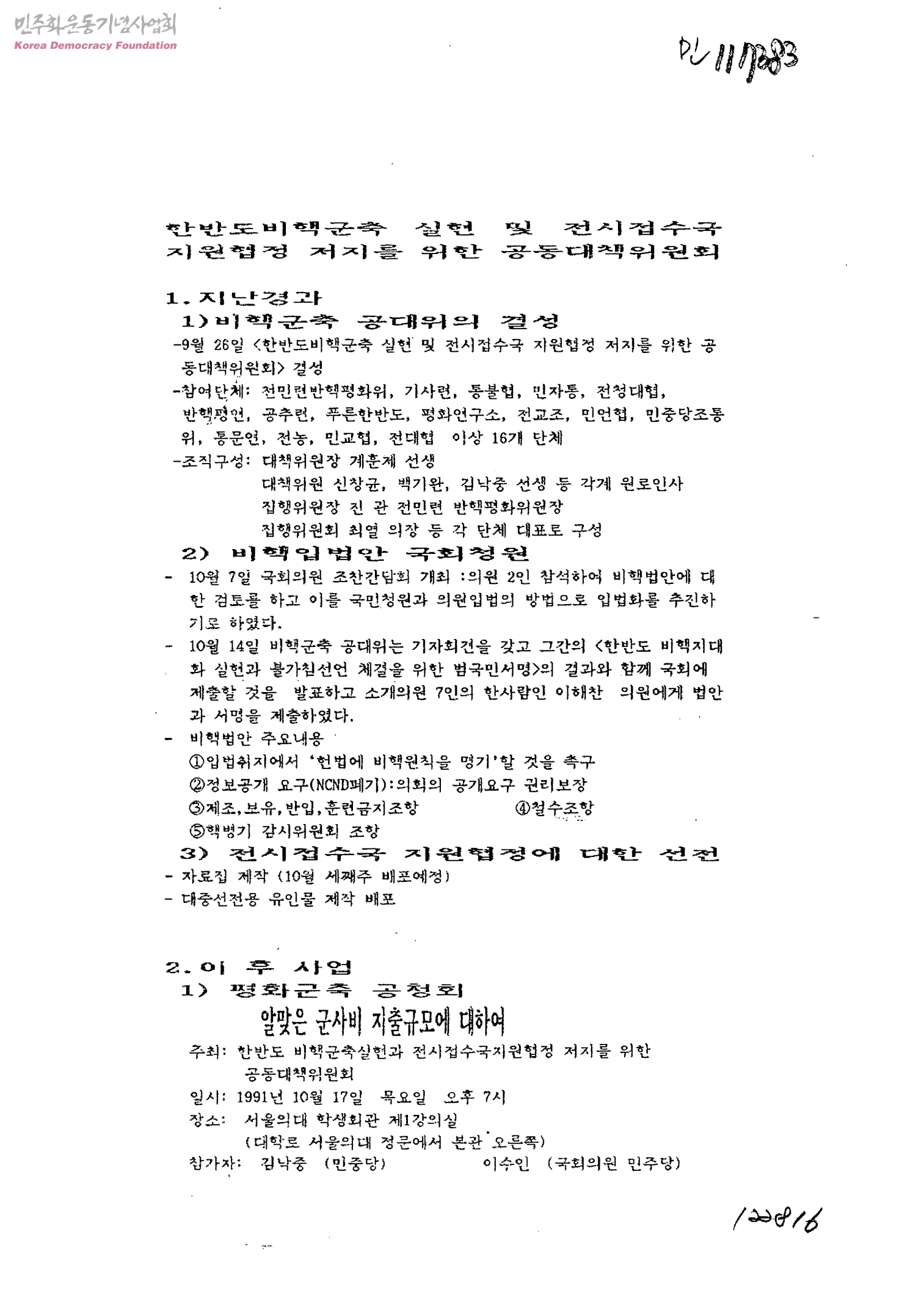 - 한반도비핵군축 실현 및 전시접수국 지원협정 저지를 위한 공동대책위원회