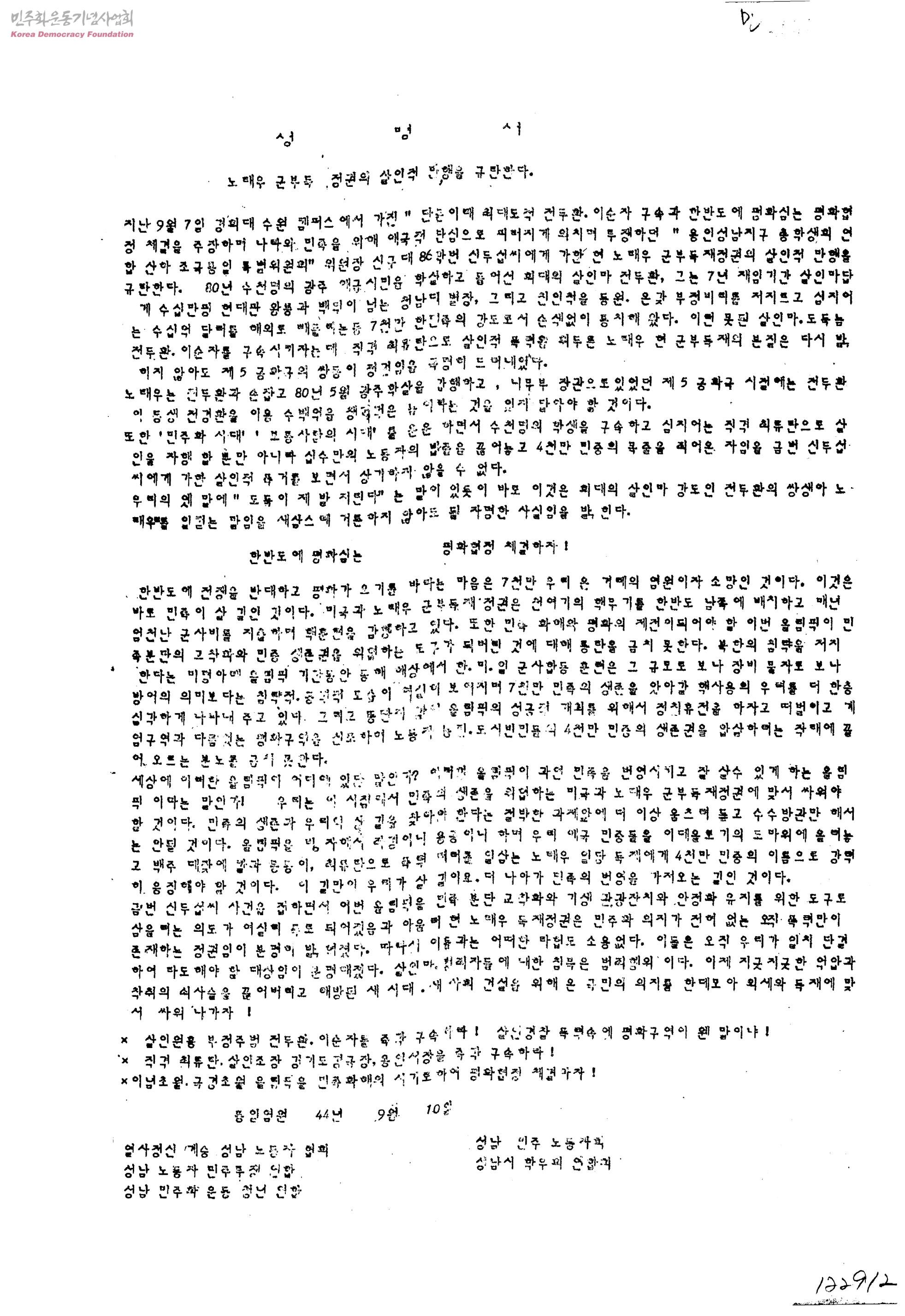성명서-노태우 군부독재 정권의 살인적 만행을 규탄한다