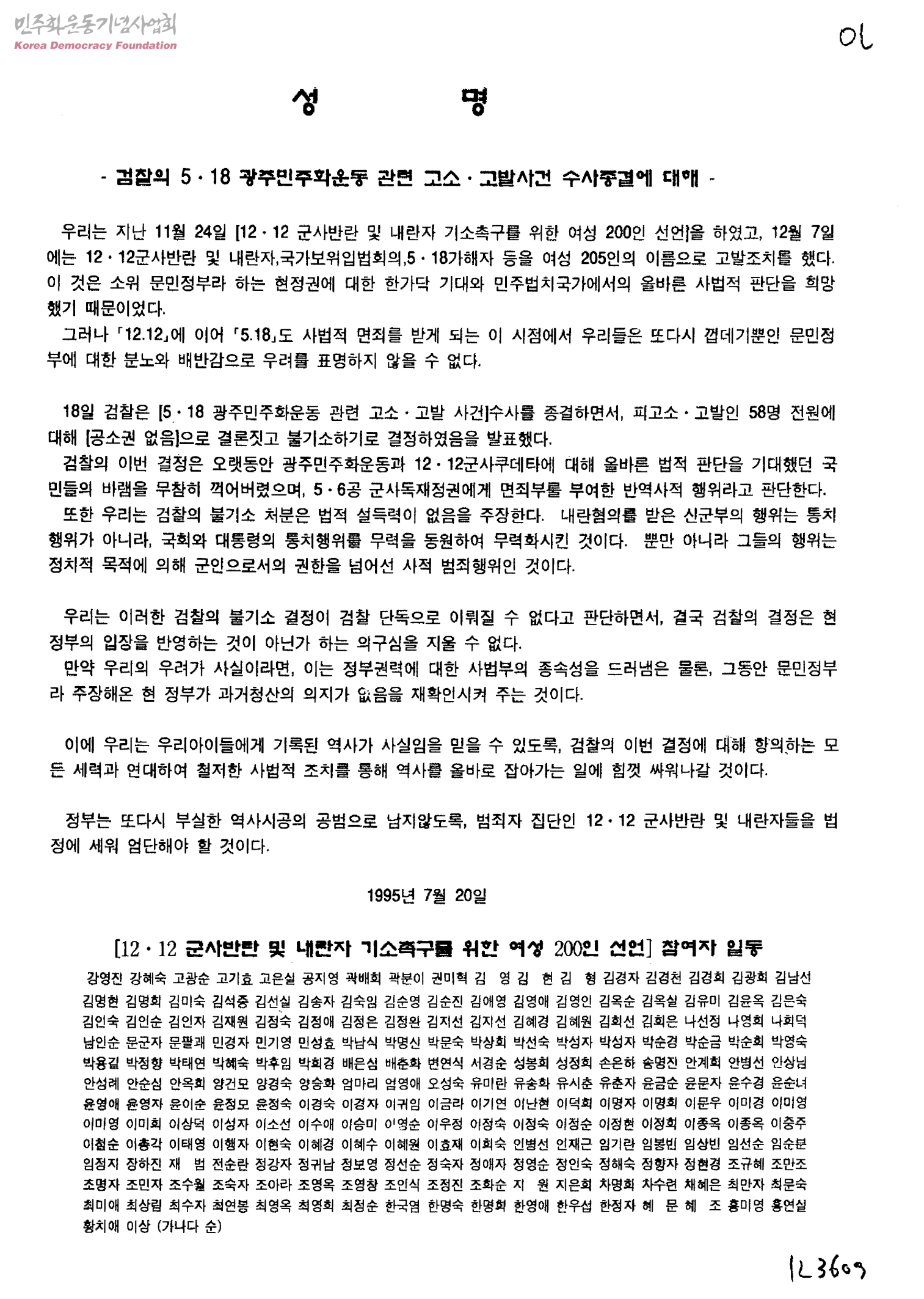 - 12.12군사반란및내란자기소촉구를위한여성200인선언참여자일동