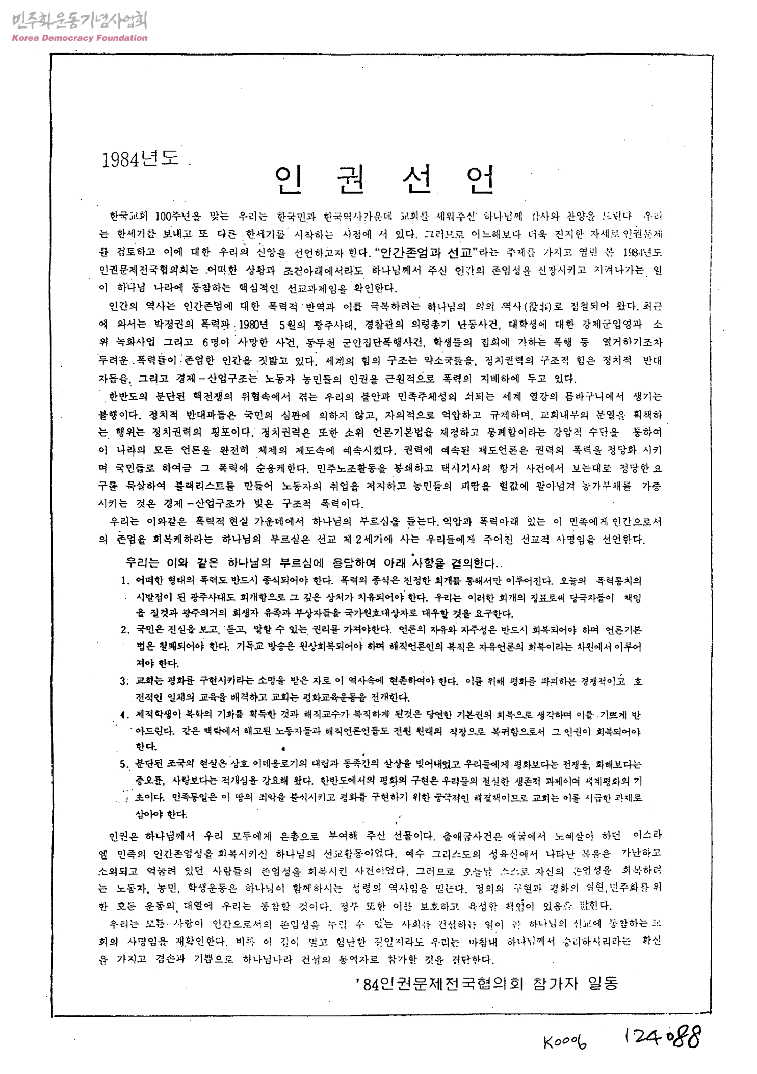 - 84인권문제전국협의회참가자일동