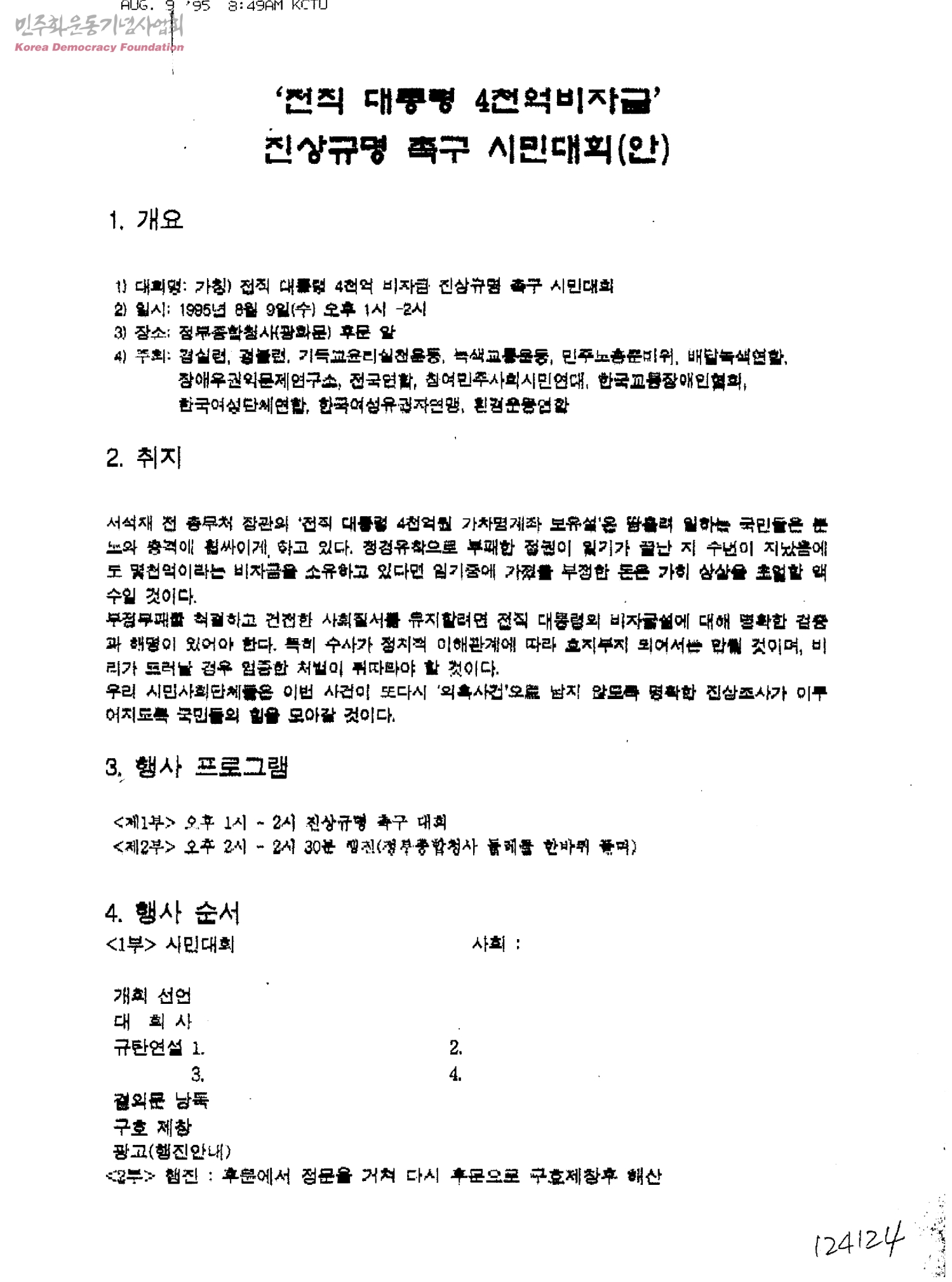 전직 대통령 4천억비자금 진상규명 촉구 시민대회(안)