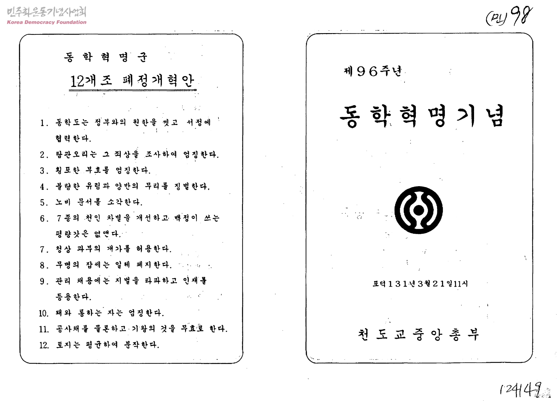 제96주년 동학혁명기념