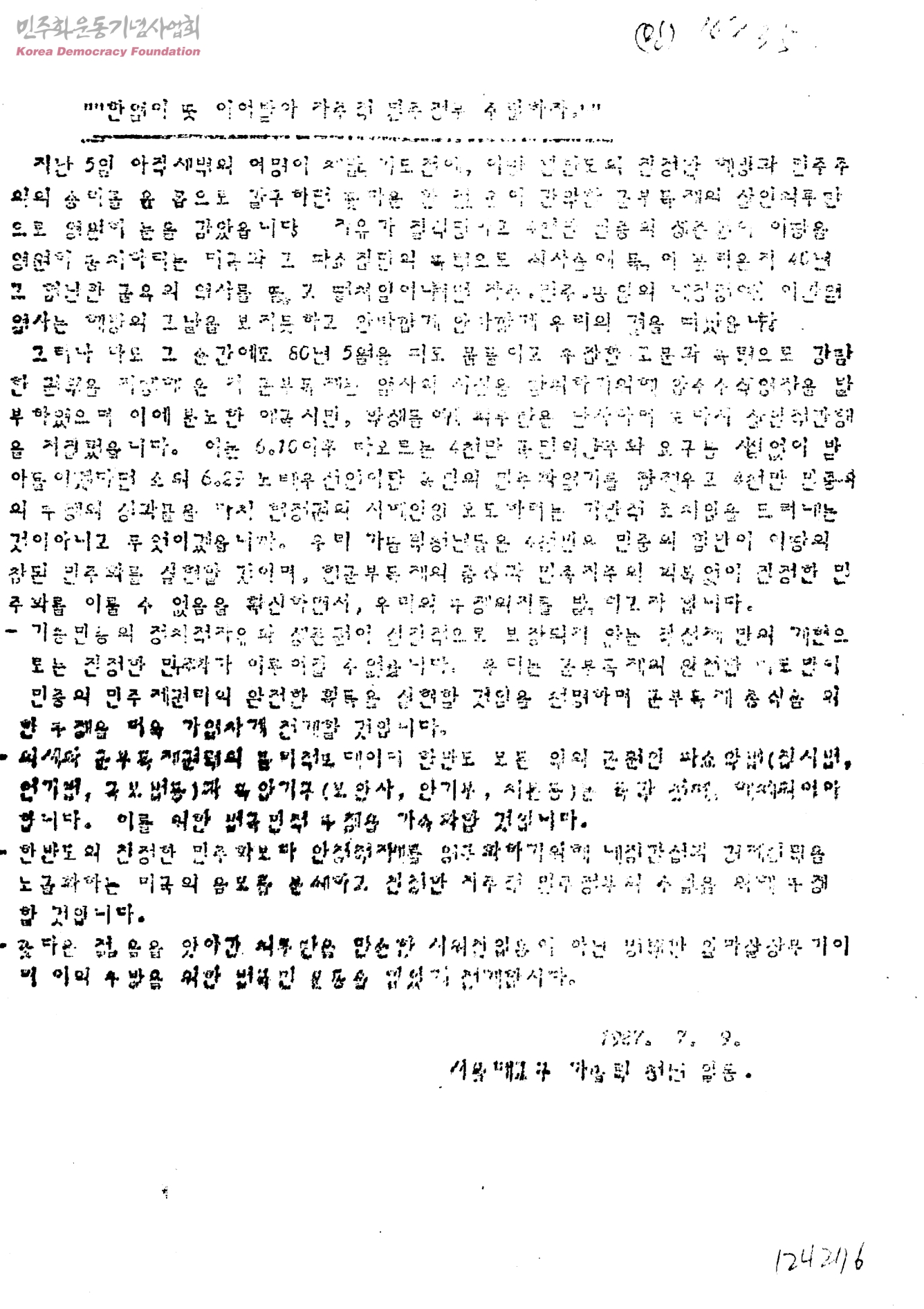 한열이 뜻 이어받아 자주적 민주정부 수립하자