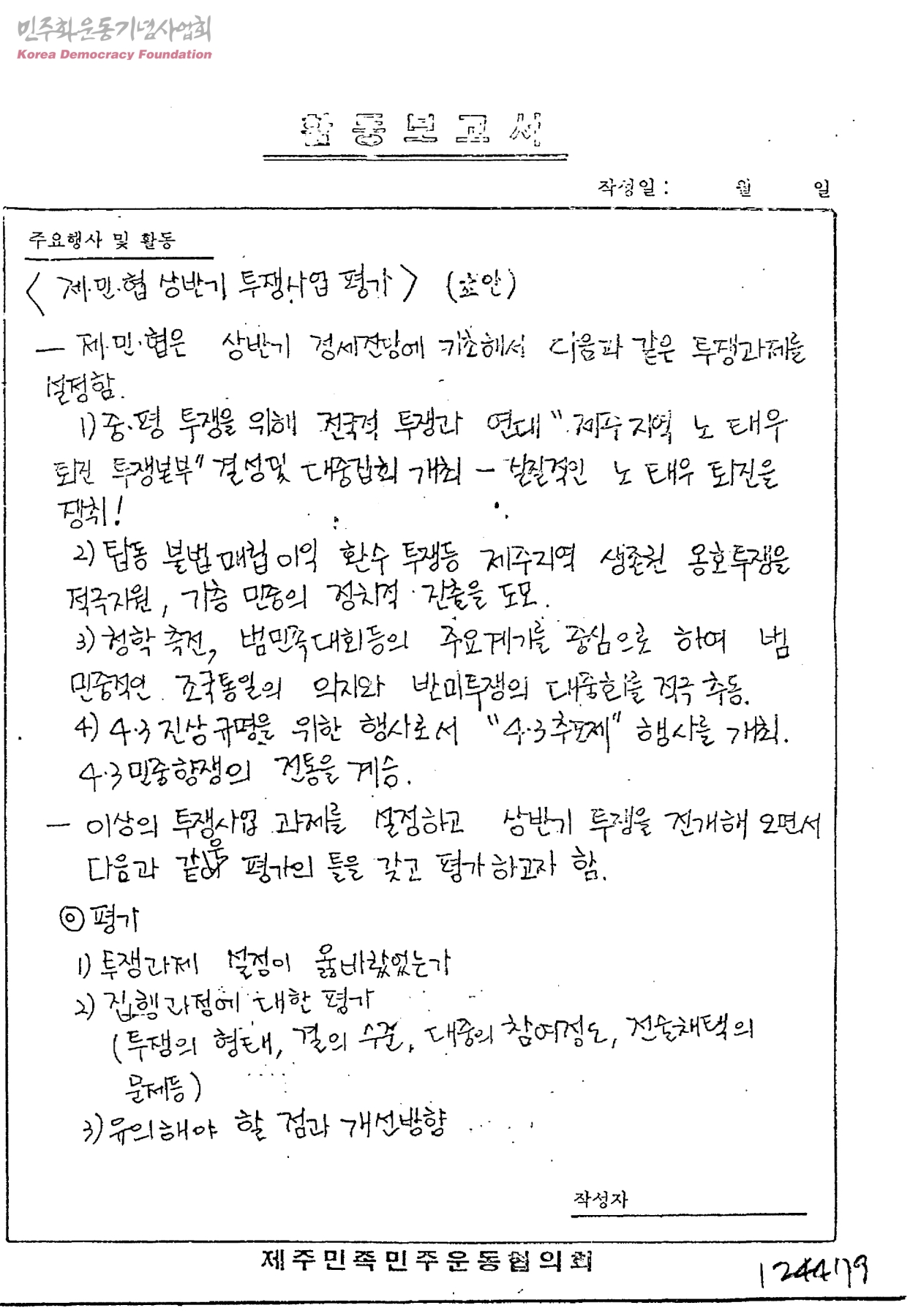 활동보고서-제주민족민주운동협의회 투쟁사업 평가