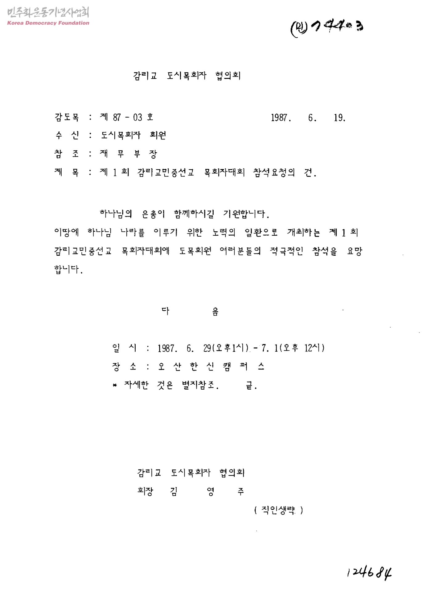 제1회 감리교민중선교 목회자대회 참석요청의 건[수신:도시목회자 회원, 발신:감리교도시목회자협의회]