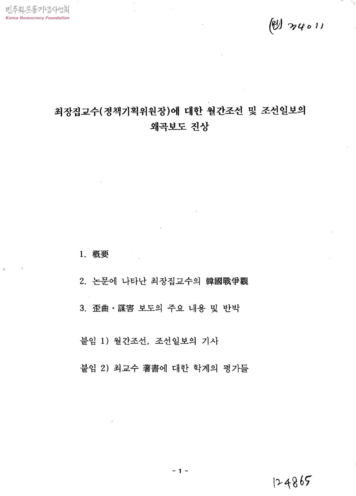 최장집교수(정책기획위원장)에 대한 월간조선 및 조선일보의 왜곡보도 진상
