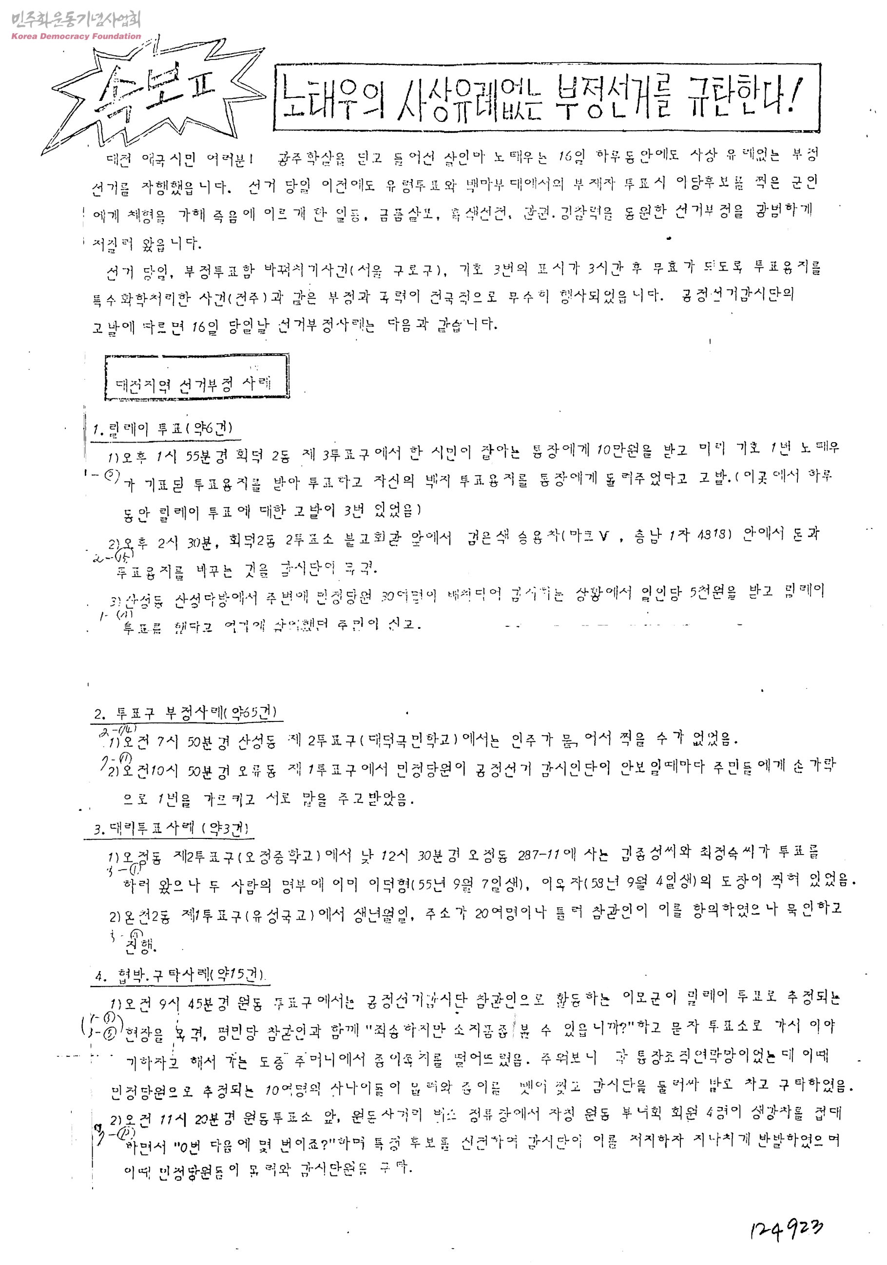 속보Ⅱ 노태우의 사상유례없는 부정선거를 규탄한다