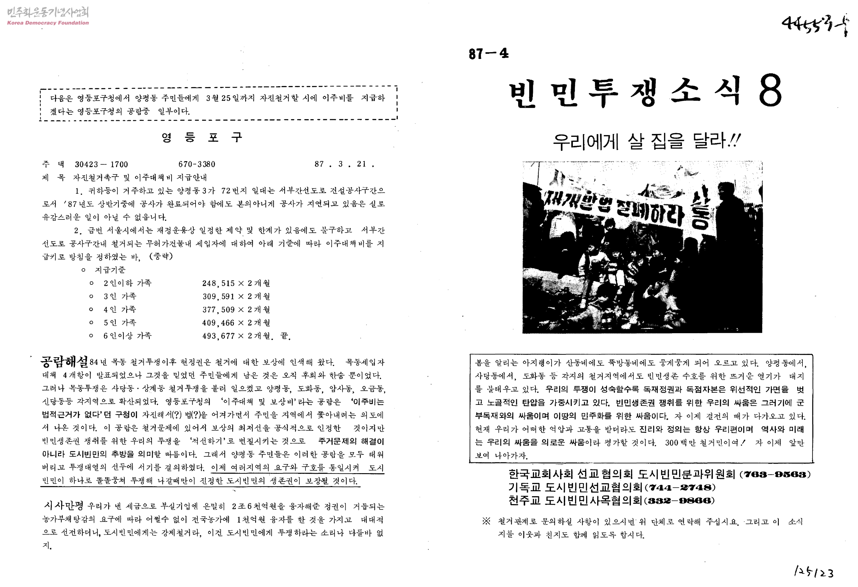 - 한국교회사회선교협의회 도시빈민분과위원회외, 기독교도시빈민선교협의회, 천주교도시빈민협의회