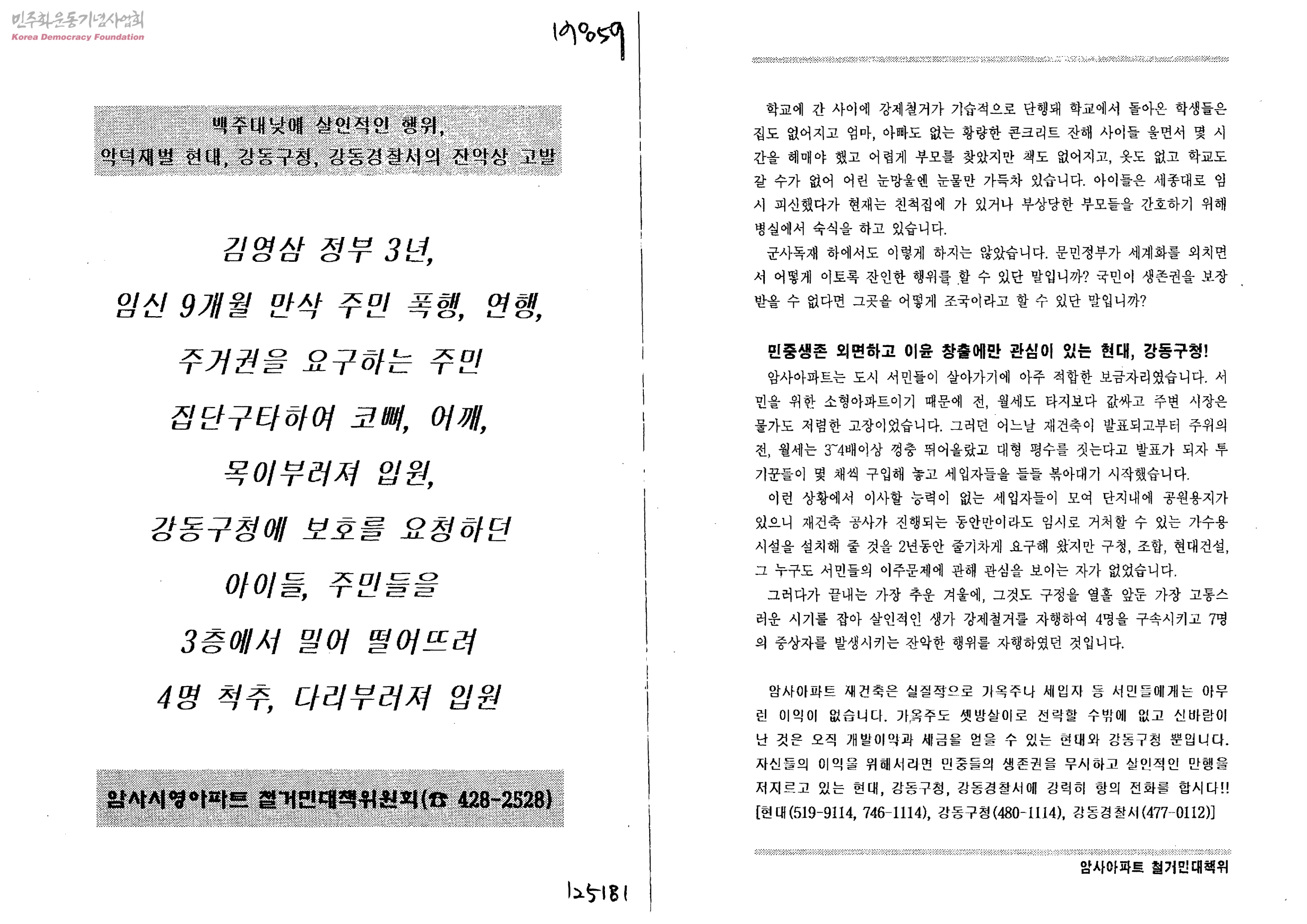 백주대낮에 살인적인 행위, 악덕재벌 현대, 강동구청, 강동경찰서의 잔악성 고발