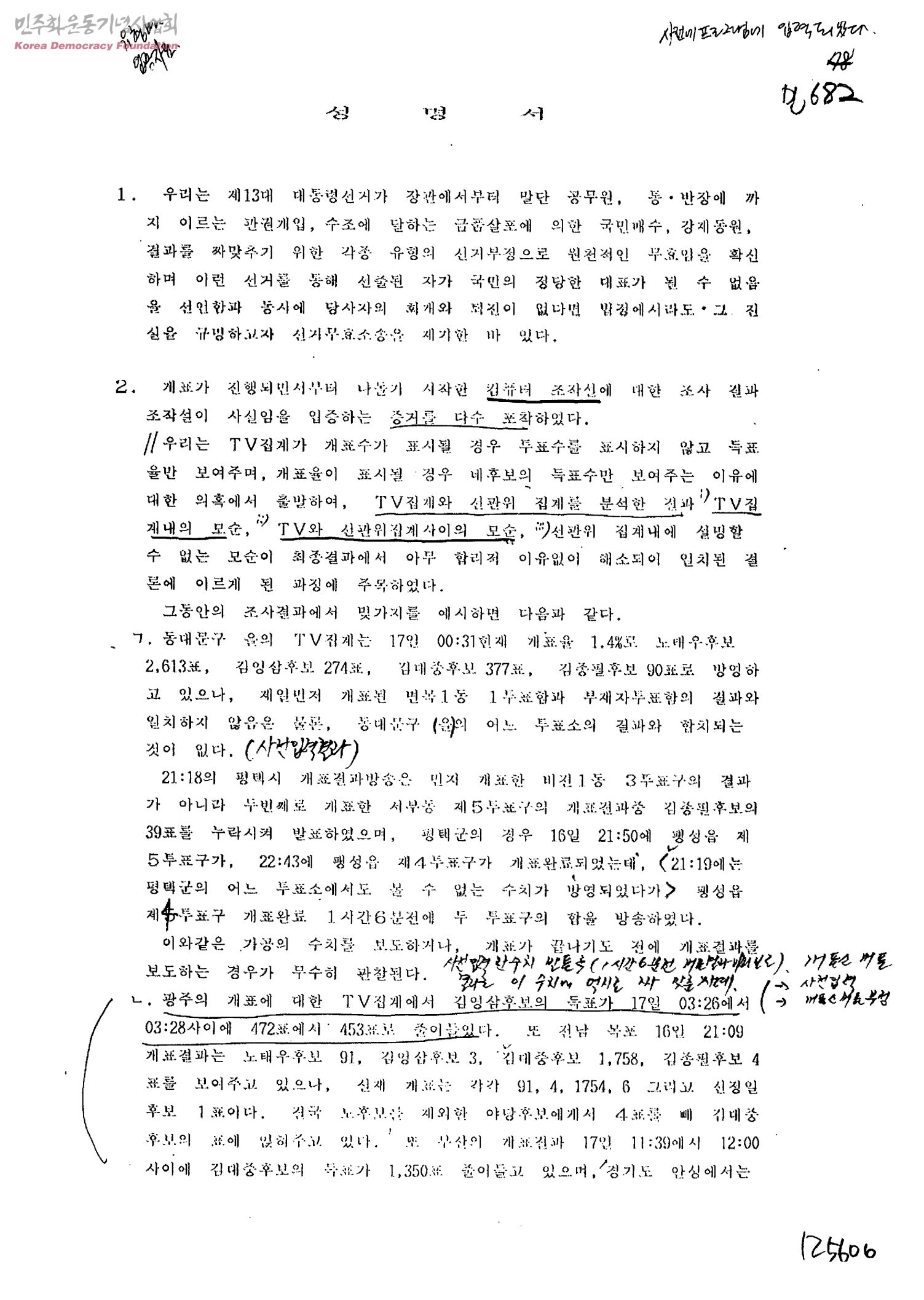 - 생산자 및 기증자가 ‘박용수’인 사진의 사용은 구매신청을 클릭하여 직접 사진 구매 신청을 하실 수 있습니다. 생산자 및 기증자가 ‘경향신문사’인 사진의 사용은 경향신문사 담당자(02-3701-1635)를 통해 구매하실 수 있습니다. 그 외의 생산자 및 기증자는 민주화운동기념사업회 사료관 담당자( hyunchaek@kdemo.or.kr / 02-6440-8961 )에 문의바랍니다.