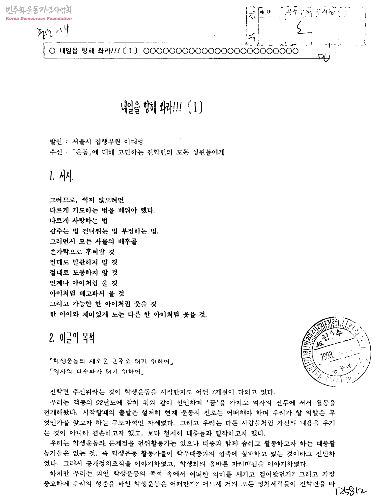 내일을 향해 쏴라[발신:서울시 집행부원 이대영 수신:운동에 대해 고민하는 진학련의 모든 성원들에게]