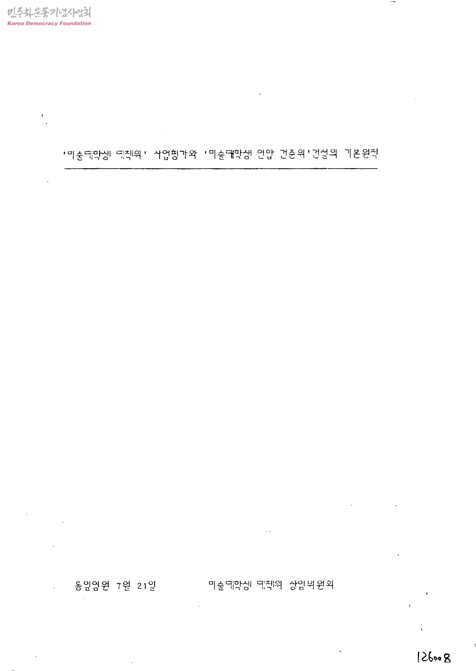 미술대학생 대책위 사업평가와 미술대학생 연합 건준위건설의 기본원칙