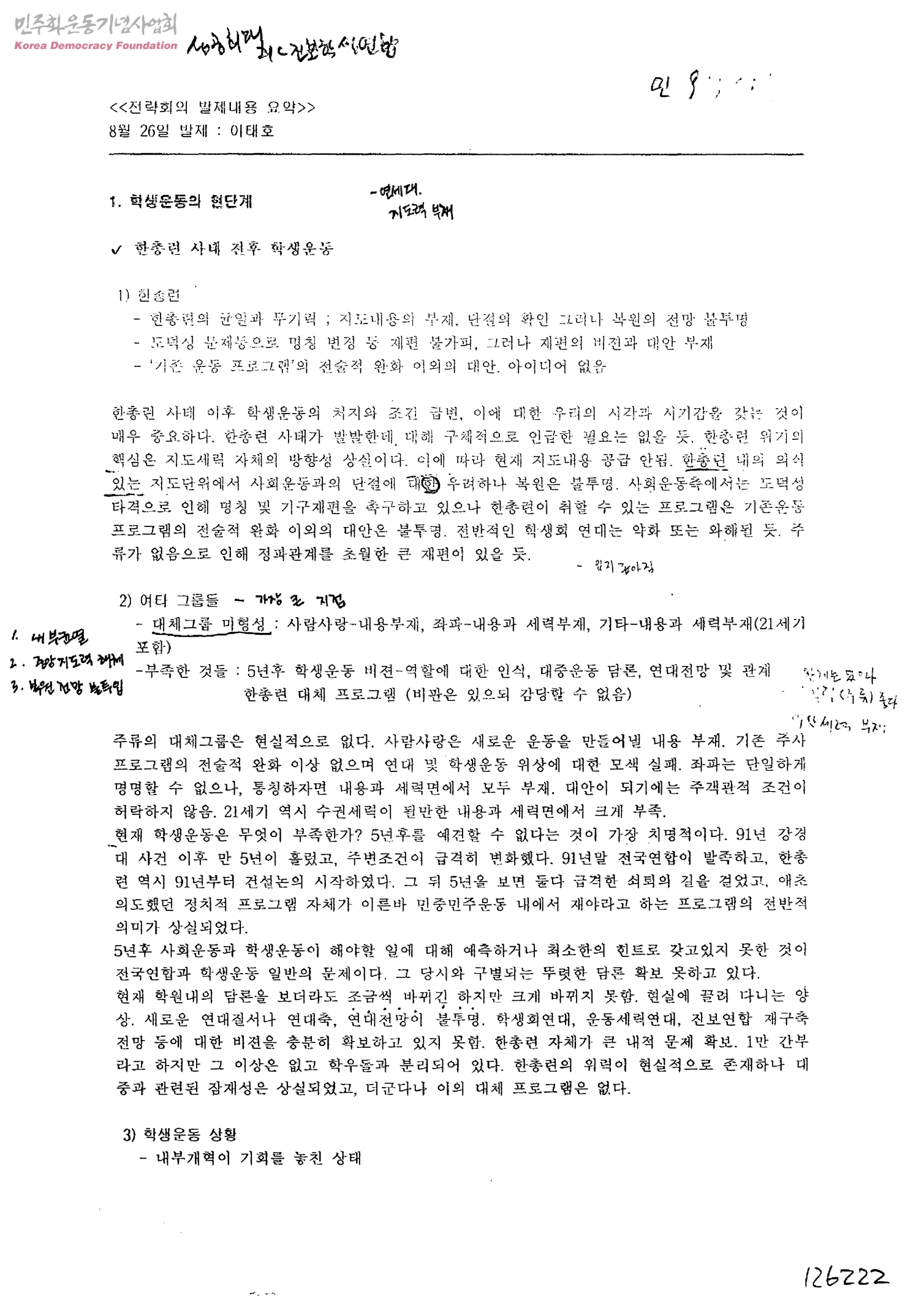 학생운동의 현단계 및 방향