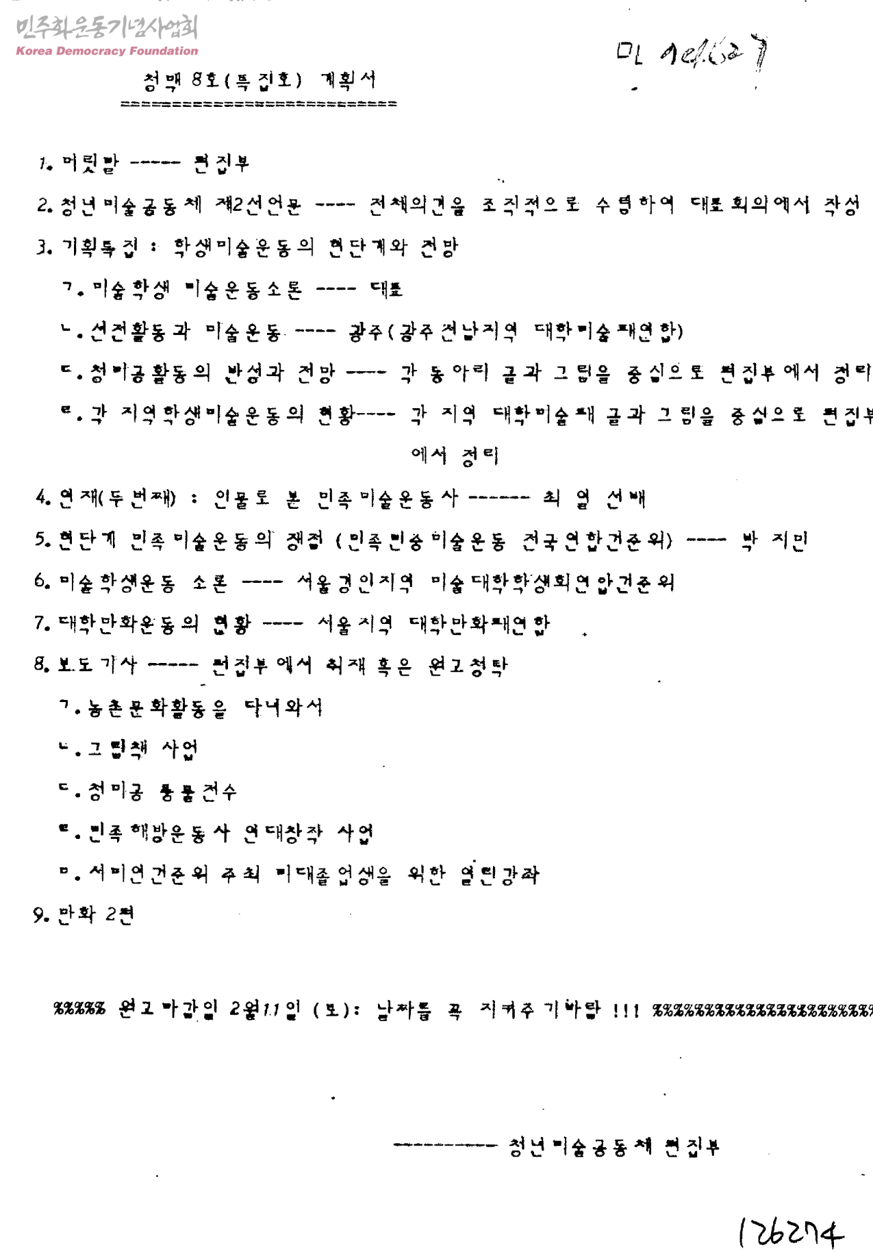 청맥8호(특집호) 계획서