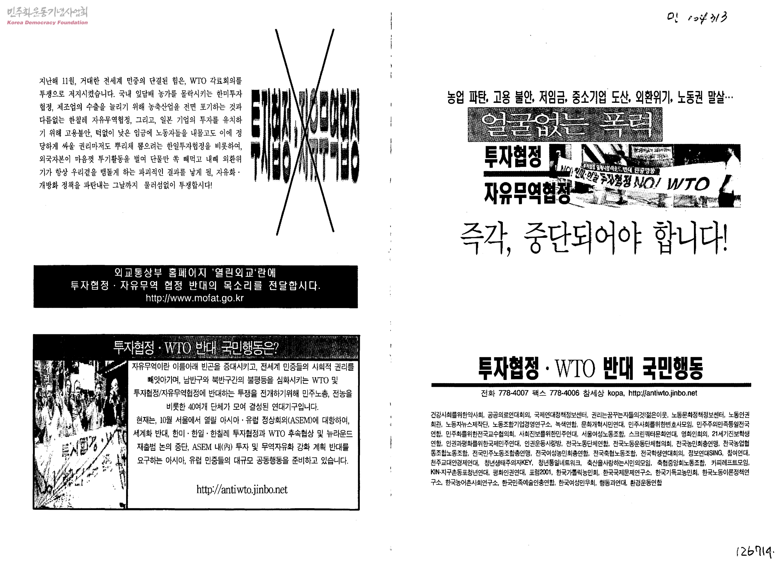 - 투자협정ㆍWTO반대국민행동