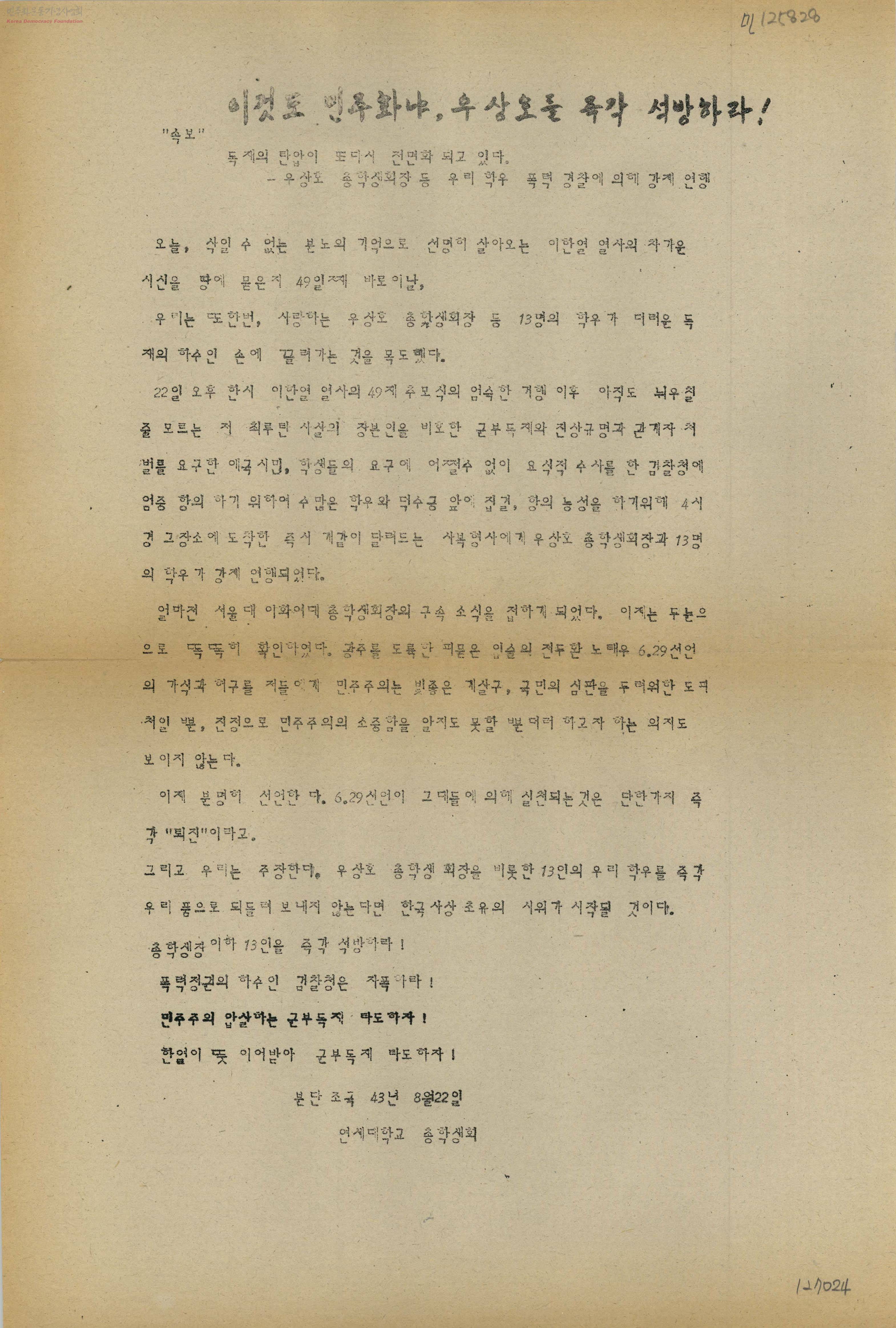 이것도 민주화냐, 우상호를 즉각 석방하라!-"속보" 독재의 탄압이 또다시 전면화 되고 있다. -우상호 총학생회장등 우리 학우 폭력