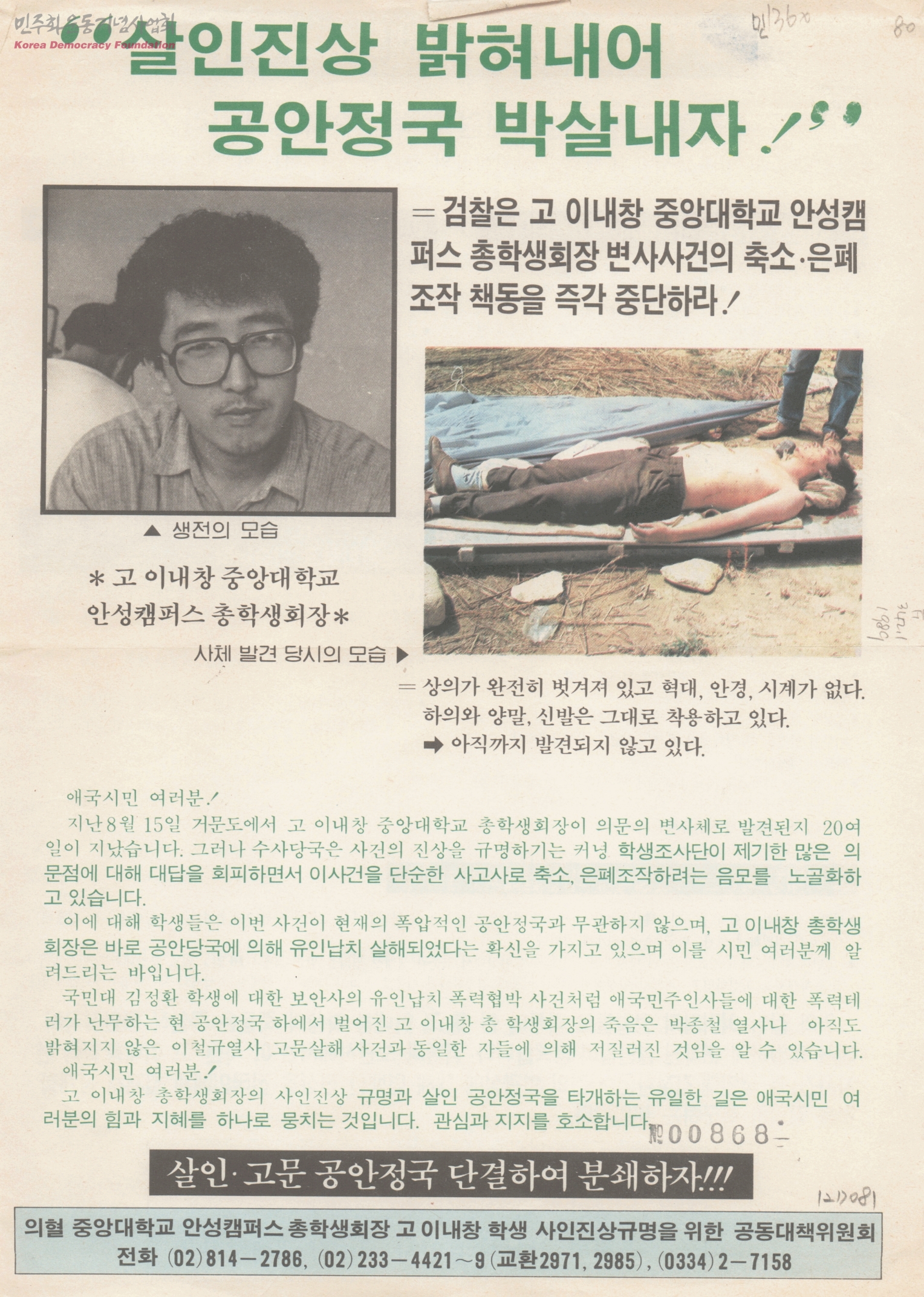 살인진상 밝혀내어 공안정국 박살내자