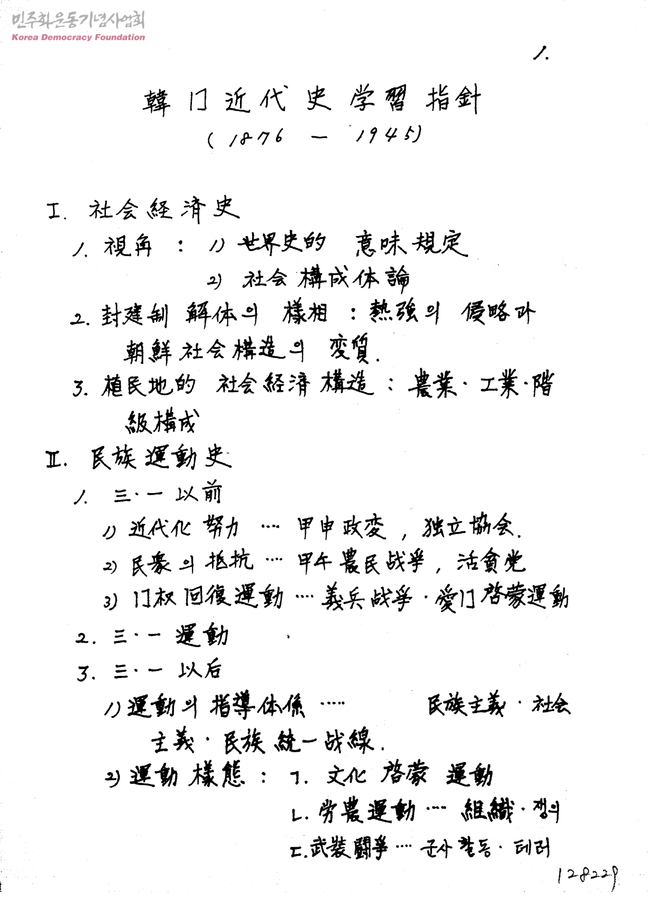 韓國近代史 學習 指針-1876~1945