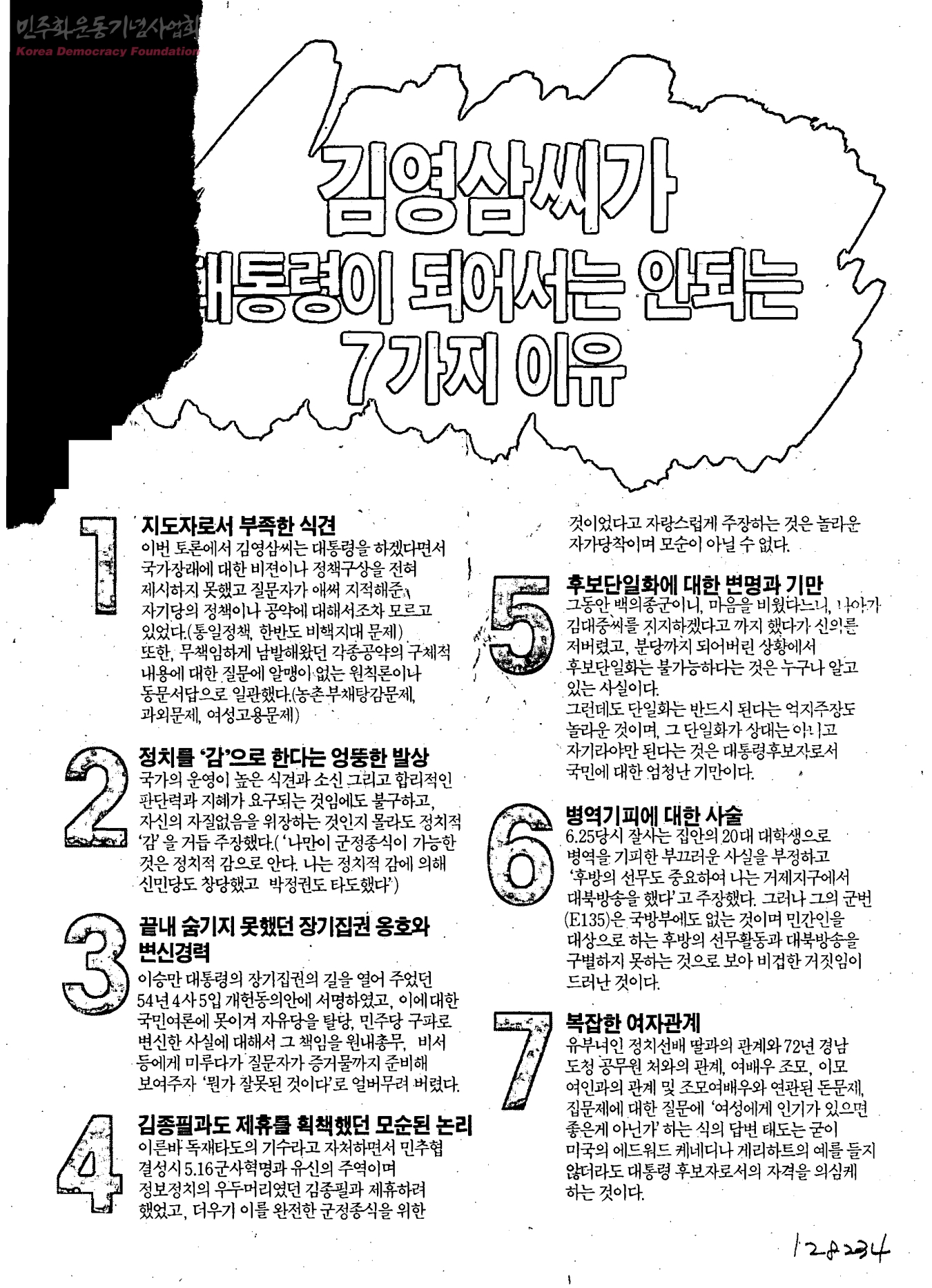 김영삼씨가 대통령이 되어서는 안되는 7가지 이유
