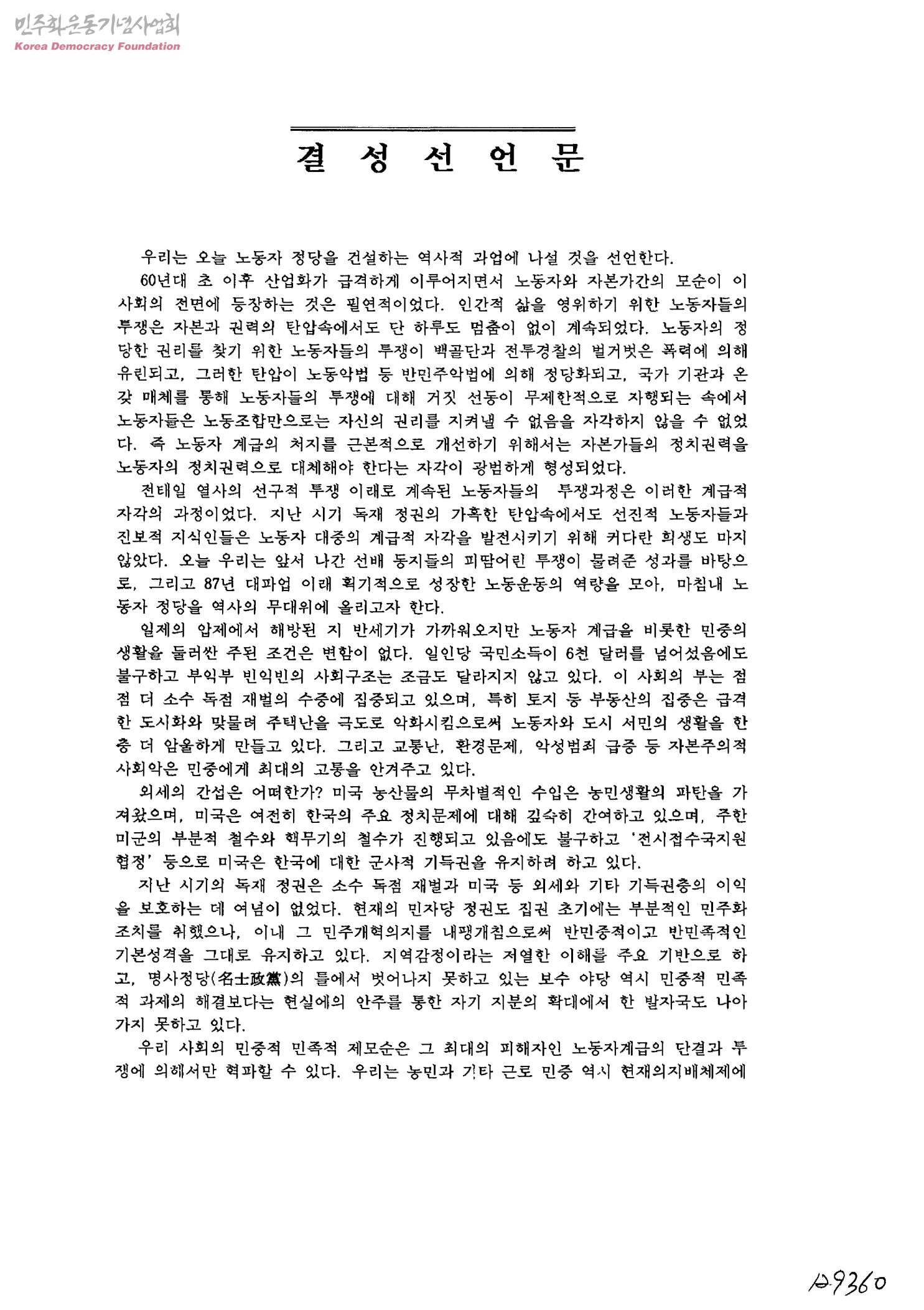 결성선언문[노동자정당건설추진위원회]
