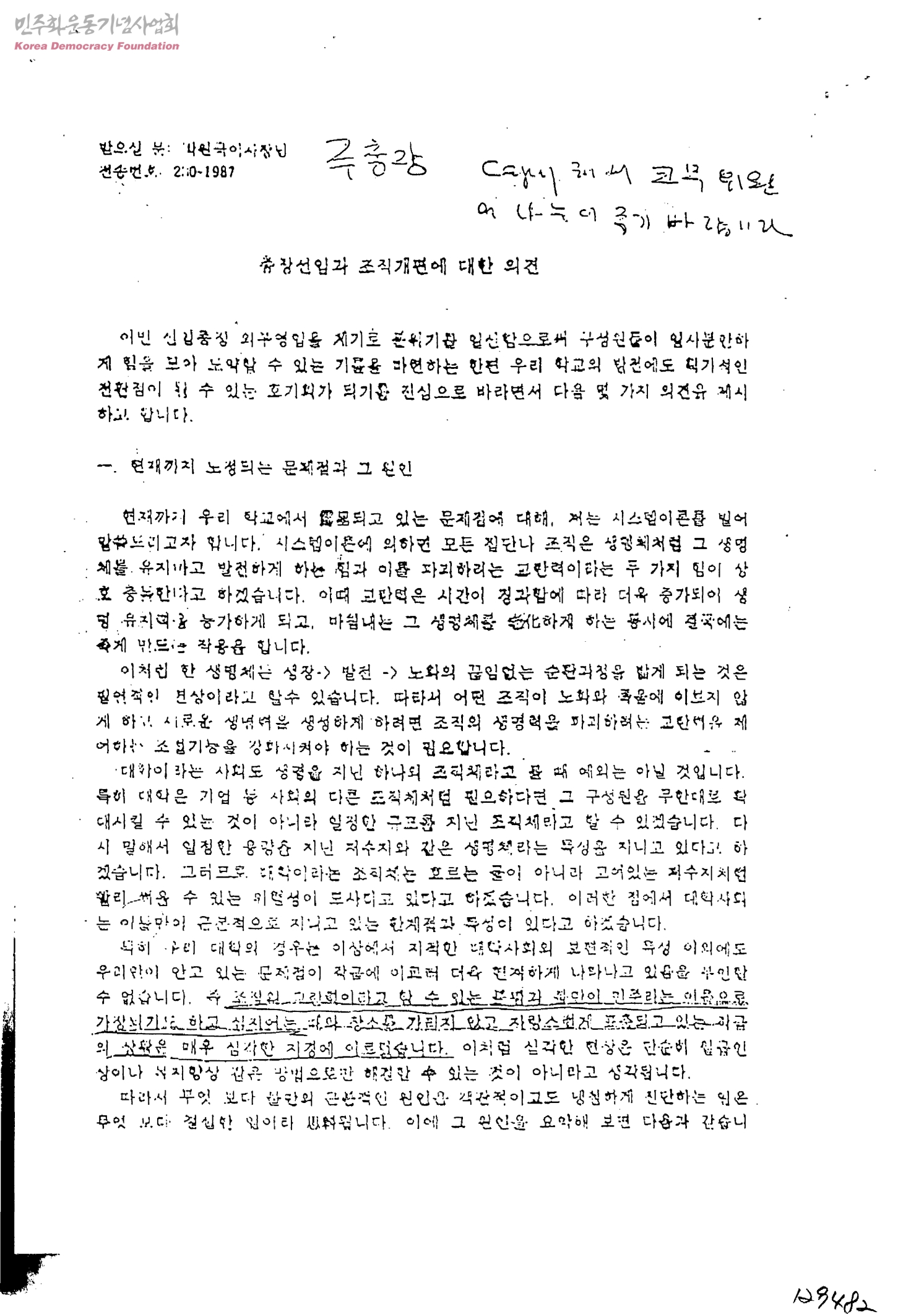 <총장선임과 조직개편에 대한 의견,대책위의 입장>
