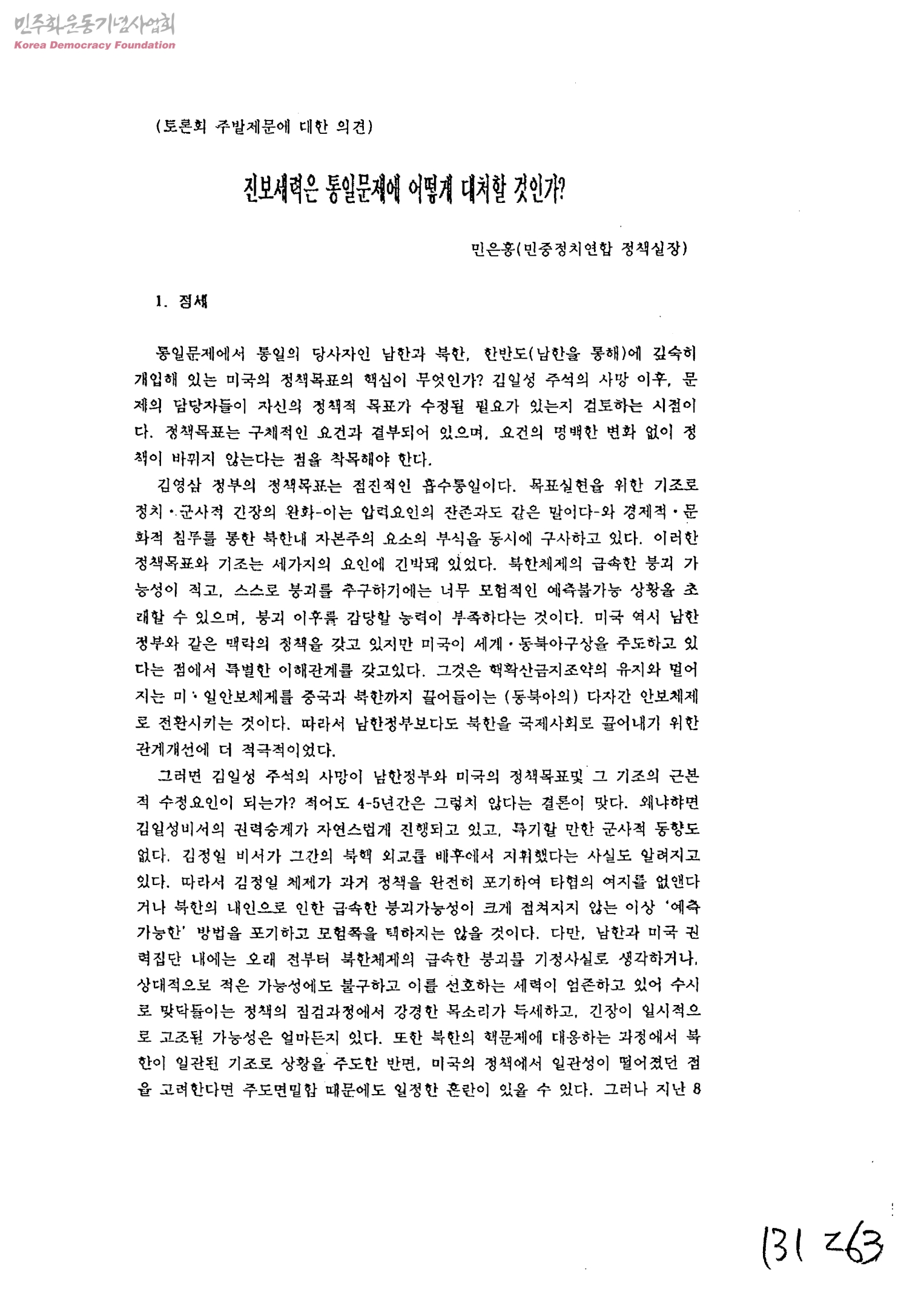 - 민은홍 민중정치연합 정책실장