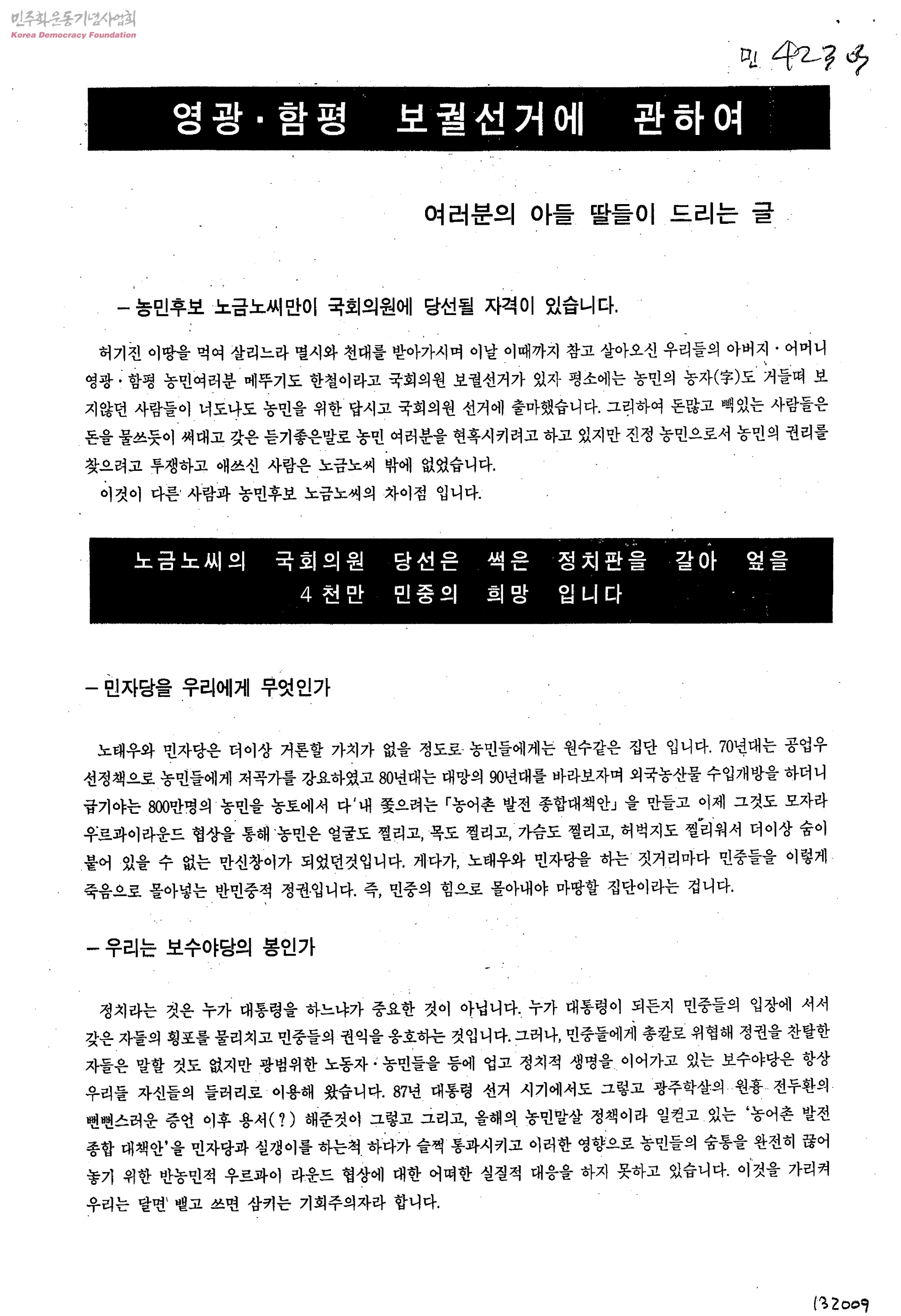 영광ㆍ함평 보궐선거에 관하여 여러분의 아들 딸들이 드리는 글