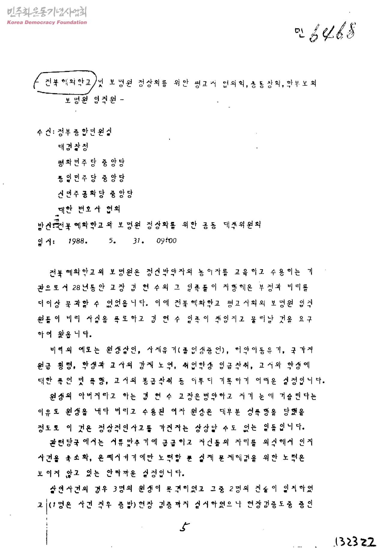 전북혜화학교와 보명원의 황령, 살인, 폭행등 비리 관련 민원[수신:정부종합민원실, 대검찰청, 평화민주당 중앙당, 통일민주당 중앙당, 신민주공화당, 대한 변호사 협회, 발신:전북혜화학교와보명원정상화를위한공동대책위원회]